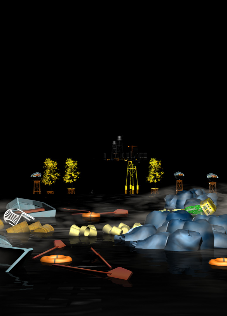 O título Bellevue refere-se ironicamente à vista nada bela, nem pela janela do trem de uma paisagem urbana distópica, nem, figurativamente, de um mundo que está rumando para o abismo ou já caiu nele. A desesperança do ambiente é aumentada pelas absurdas plataformas de resgate e proteção. O observador ausente sentado na janela supostamente segura olha para um mundo desconstruído e deserto e, ao mesmo tempo, é parte dele.