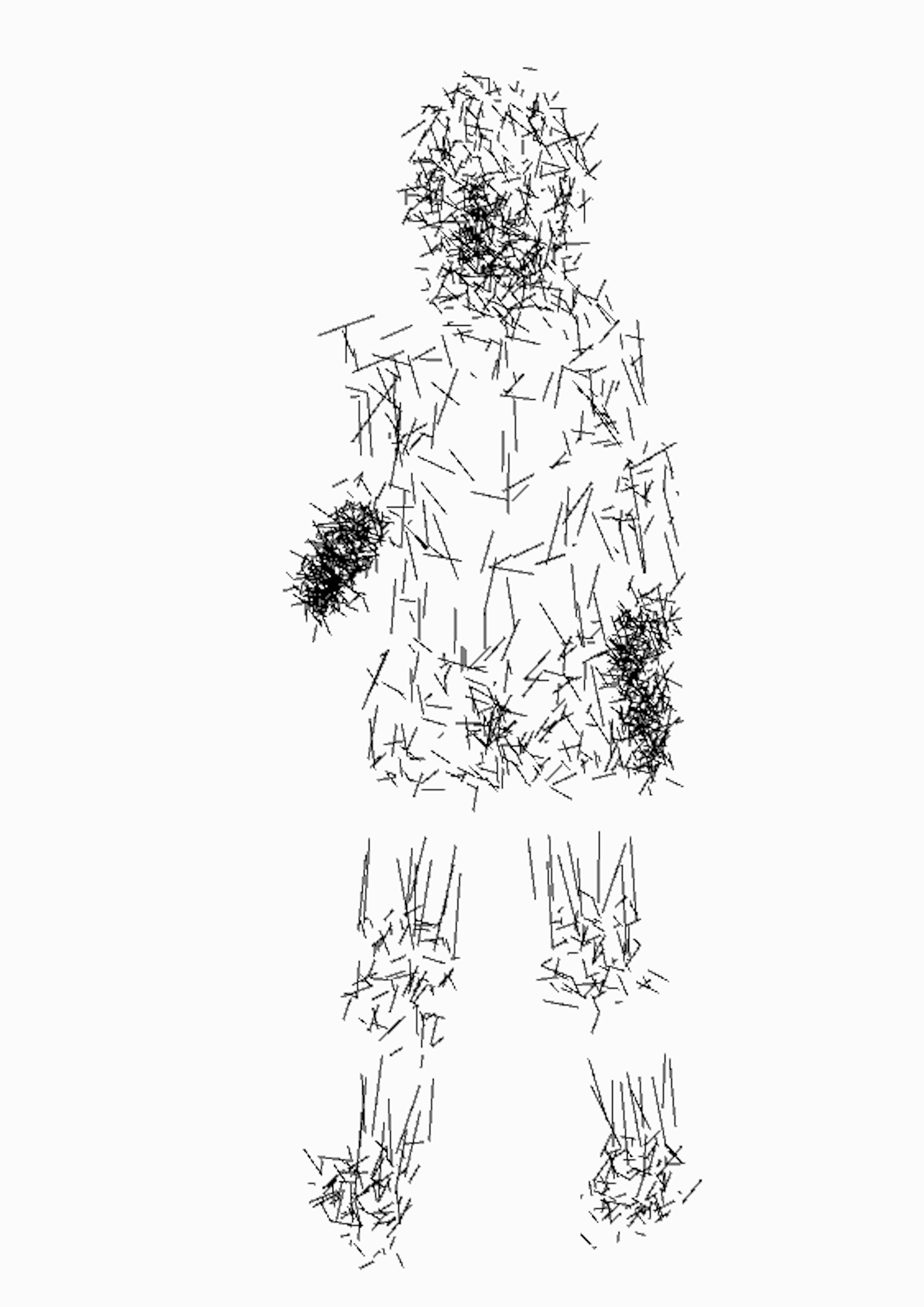 Esse corpo figurado que realiza uma transformação de uma forma de representação estática, linear e cartesiana para um modelo ruidoso e instável reflete algumas das quebras de paradigmas pelas quais temos passado ultimamente. Dessas quebras surge um cenário onde toda a estabilidade chacoalha, onde as formas e contornos saem da linha, onde o ser se torna volátil como nuvens de partículas que se agitam de maneira caótica, assumindo variadas possibilidades de configuração.