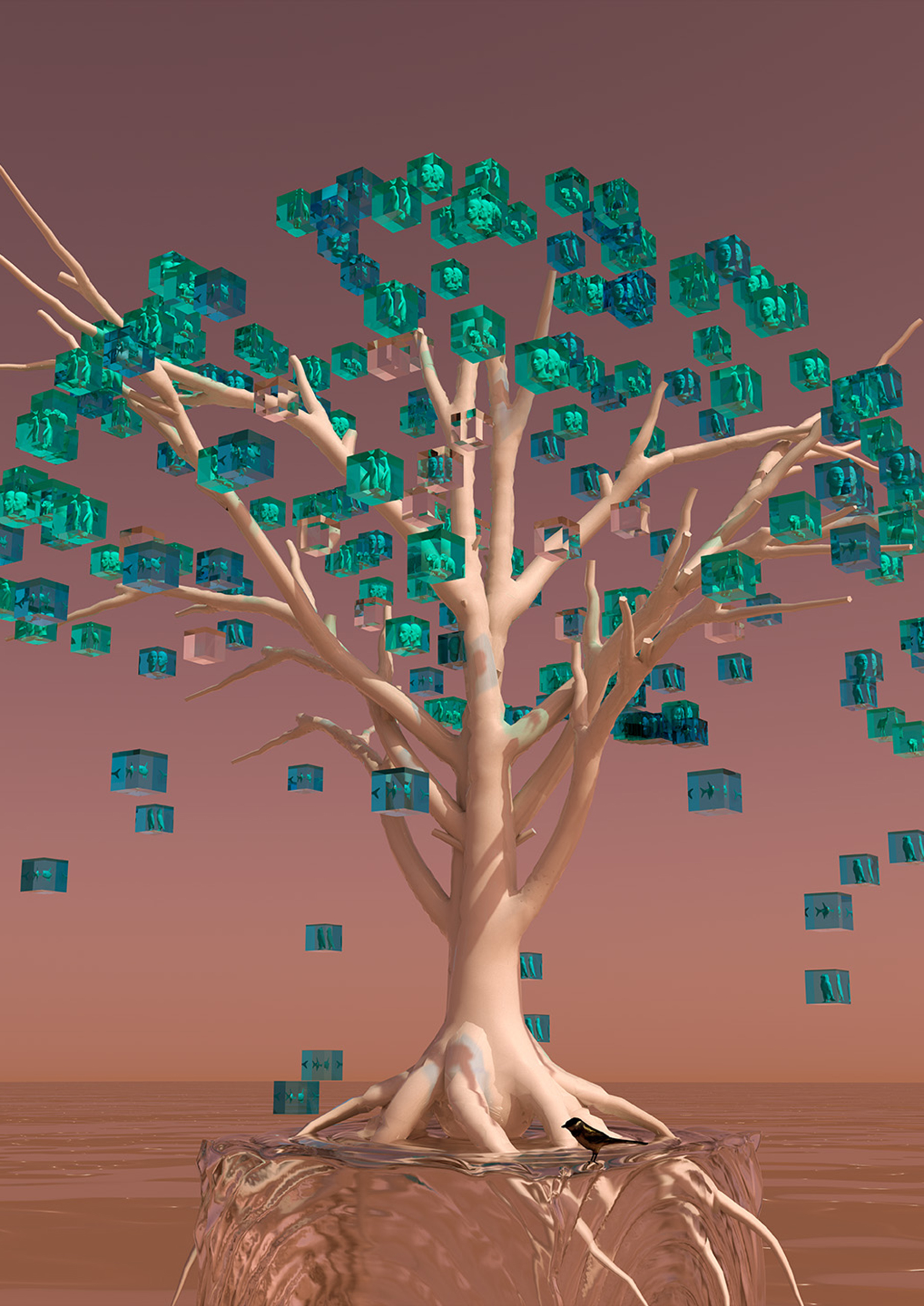 Animação 3D que reflete a passagem do tempo na perspectiva de uma superárvore. A obra nos mergulha em um futuro especulativo onde toda matéria orgânica, inclusive a humana, está extinta. A árvore guarda as amostras de espécies extintas preservadas e expostas em uma matéria orgânica virtual destinada a perpetuar a vida. A árvore é um símbolo de um elemento da natureza que vive por muitas gerações – morreremos, mas as árvores provavelmente vieram para ficar.