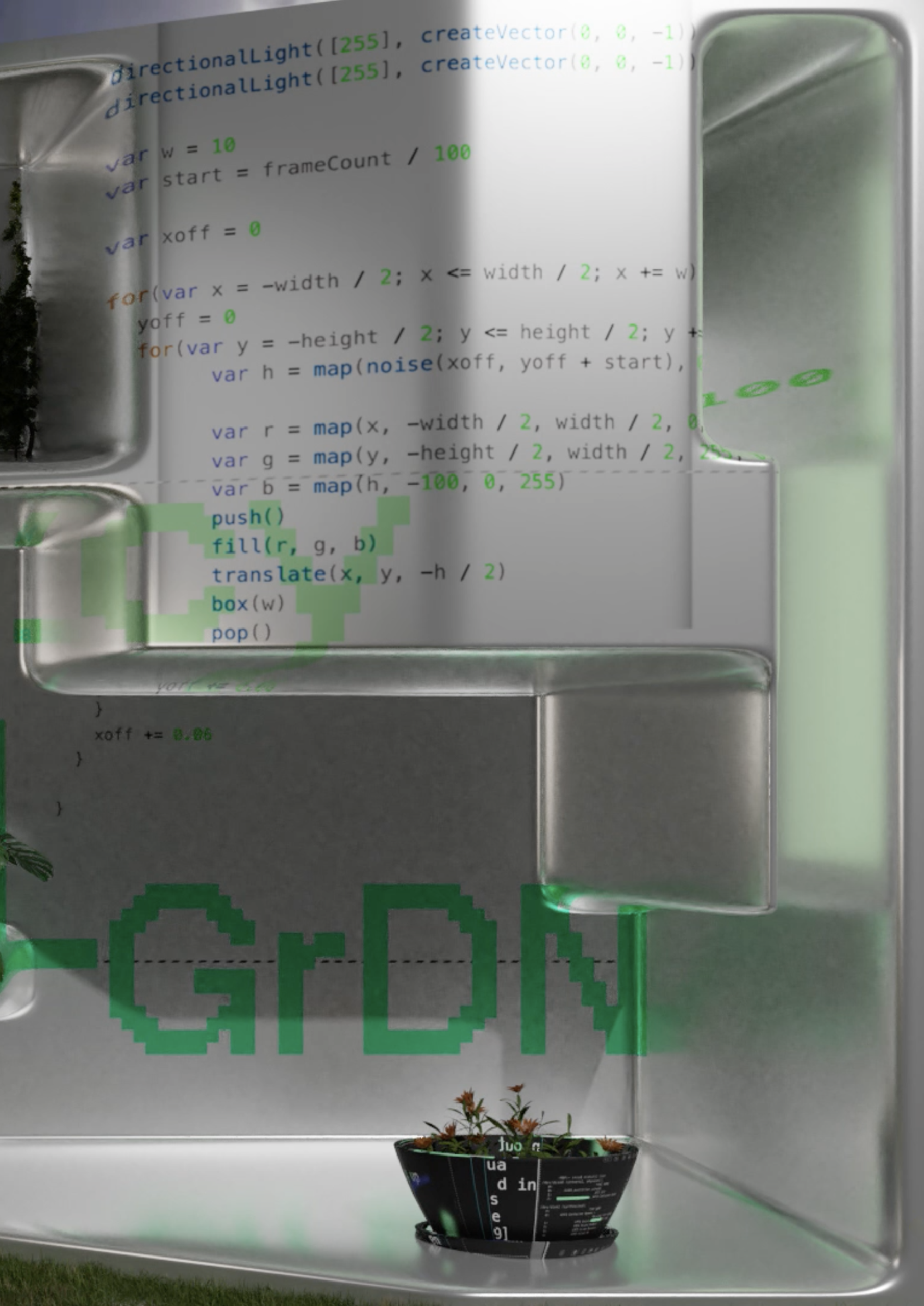 Ao colocar a automação dentro deste jardim simulado, surge a complexidade do que é ser humano nesta era eletrônica. Aprendizagem, lazer e trabalho compartilham a mesma estrutura intercambiável nesta dinâmica pós-verdade, onde as operações são engendradas de forma ambígua para elogiar e glorificar o árduo caminho do sistema de trabalho. { emulação híbrida que lida com a codificação como estrutura principal de uma semiótica / . }