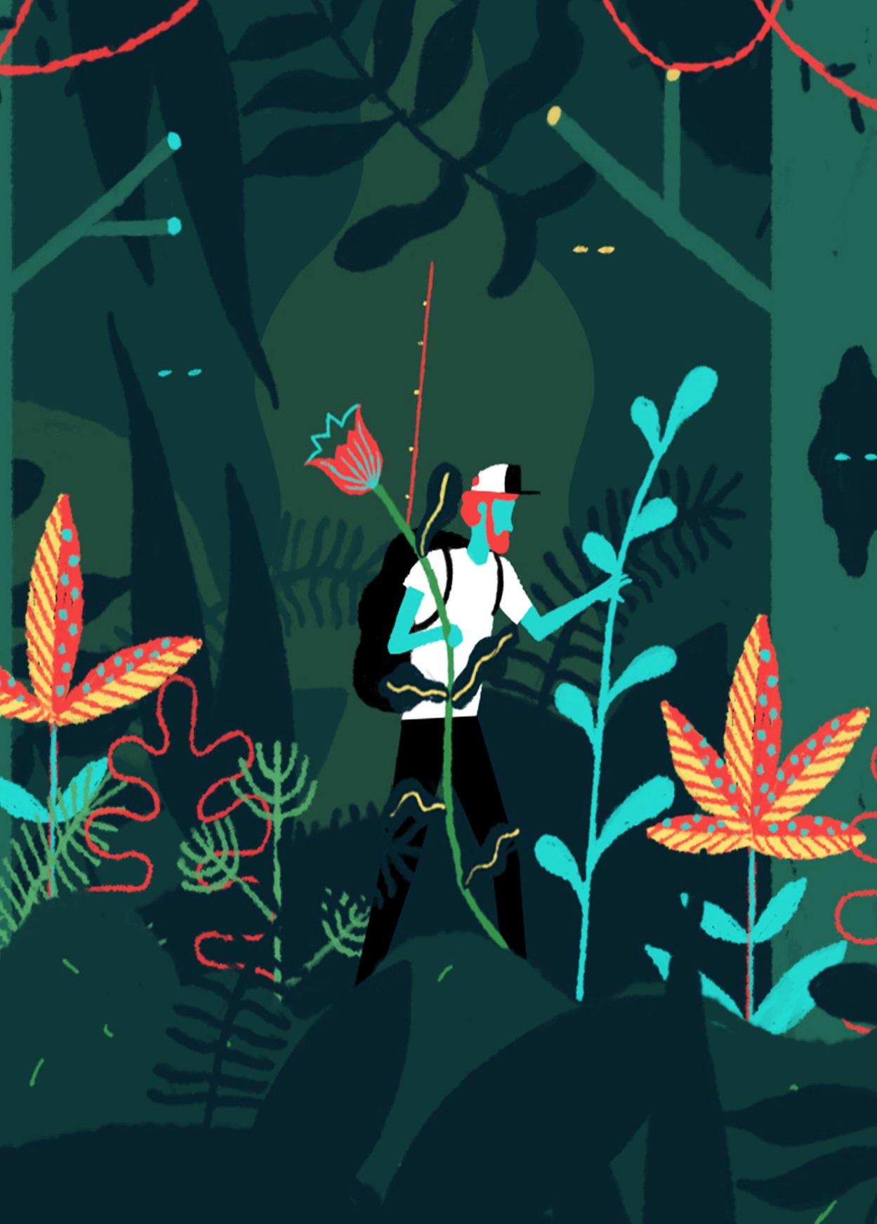 A indústria de pesca esportiva depende da conservação, e eles já vieram com tudo. Tiramos inspiração da arte, cores e música da Guiana para criar esta viagem de perspectiva mista sobre a selva e os animais selvagens que lá vivem.