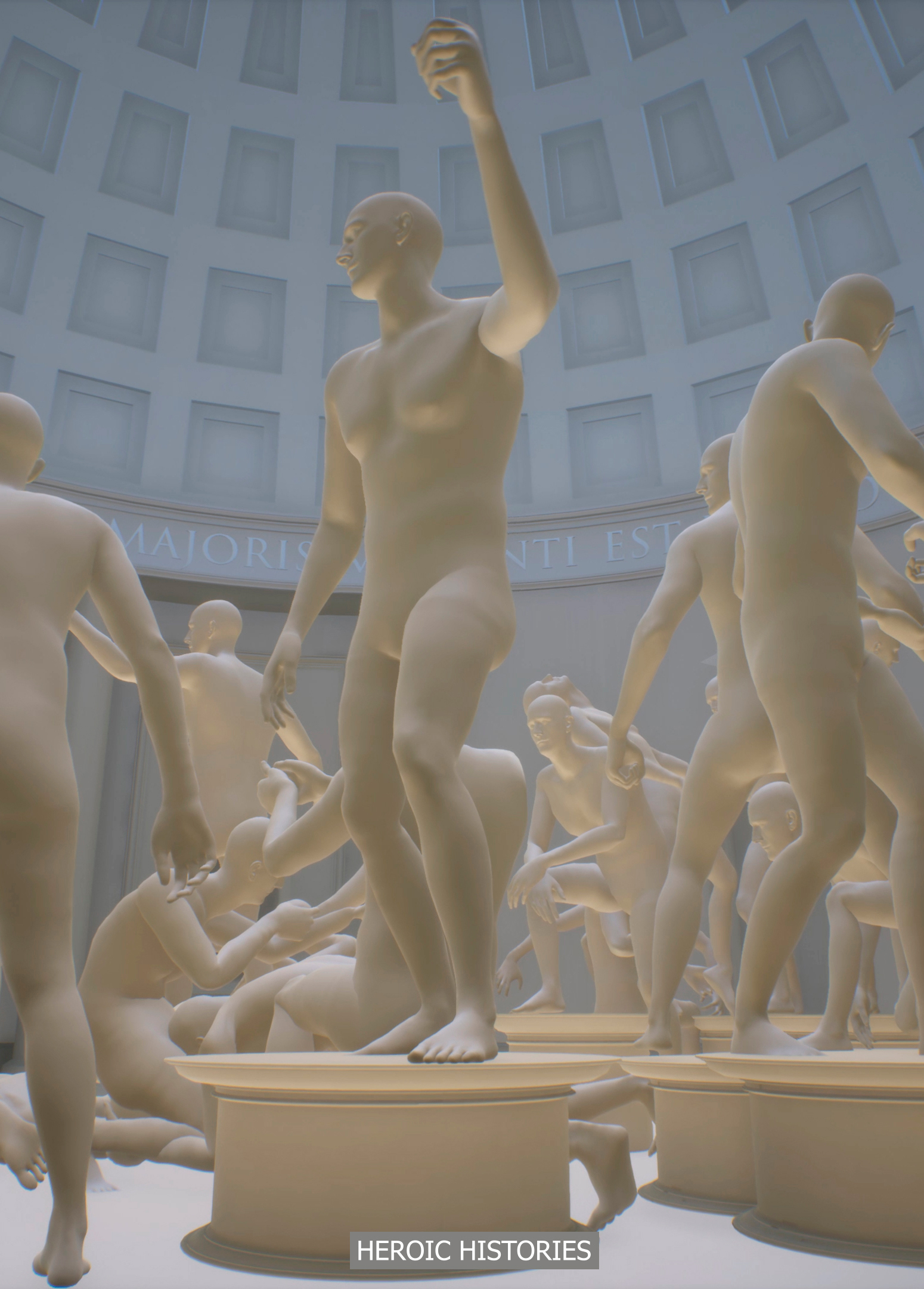 Este trabalho baseia-se em pinturas nacionalistas europeias do século XIX e explora o papel da arte na representação de ideais patrióticos e chauvinistas que se tornaram culturalmente simbólicos na formação do Estado-nação. A obra re-anima as posições de guerra e as posturas encontrados dentro dessas telas, usando animações de personagens extraídos do videogame Call of Duty. O trabalho desafia as noções de nostalgia do Estado-nação, criando uma crítica contemporânea sobre a violência subjacente que sustenta grande parte das ideologias nacionalistas de hoje.