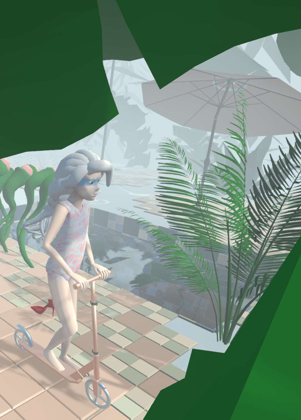 ‘After Party’ é uma animação sobre duas meninas, Ada e Milica. Elas se percebem em um espaço estranho, local onde acontece uma festa de adultos. A cada nova simulação, suas personalidades evoluem de formas imprevisíveis: entre a Infância e a Adolescência, o Refinamento e a Selvageria. Nosso trabalho digital consiste em criar ambientes artificiais na forma de animação, usando um software personalizado onde os personagens de AI (Inteligência Artificial) interagem entre si e com o mundo virtual que os cerca. Essas obras geralmente são inspiradas em histórias ou mitos encontrados em diferentes culturas.