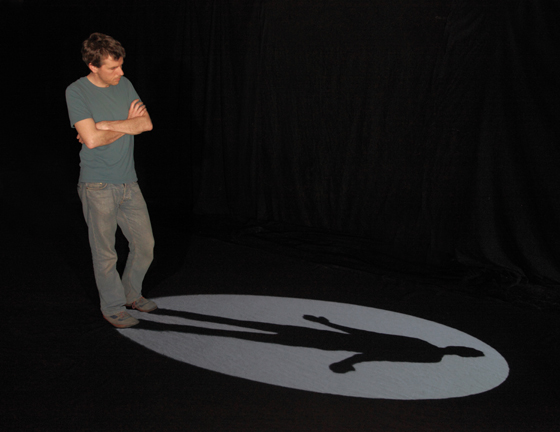 Tão natural quanto a luz do sol, a sombra de uma pessoa, antes uma companhia constante, agora muitas vezes escapa da atenção. Uma silhueta de nossa forma física, a sombra nada mais é que uma redução chapada e desencarnada dos contornos de alguém. A instalação “skia” examina a ação recíproca de nossas sombras e de nossa percepção consciente de nosso deslocamento físico no espaço. Nesta instalação em circuito fechado, imagens do visitante são manipuladas e projetadas como sombras artificiais. O que significa se a sombra de alguém de repente se liberta e ganha autonomia? E o que essa separação tem em comum com as múltiplas identidades do ego pós-moderno? Construção e função: Se uma pessoa se movimenta dentro da instalação, ela é detectada por uma câmera infravermelha. Essa imagem é processada e manipulada por um programa de software elaborado em openframeworks (framework baseado em C++) com implementação opencv. A imagem manipulada é projetada como uma sombra artificial adulterada por um projetor de vídeo. Se a pessoa continua andando, a silhueta pessoal é projetada como uma sombra artificial em tempo real, mas se ela parar, a sombra toma uma forma diversa.