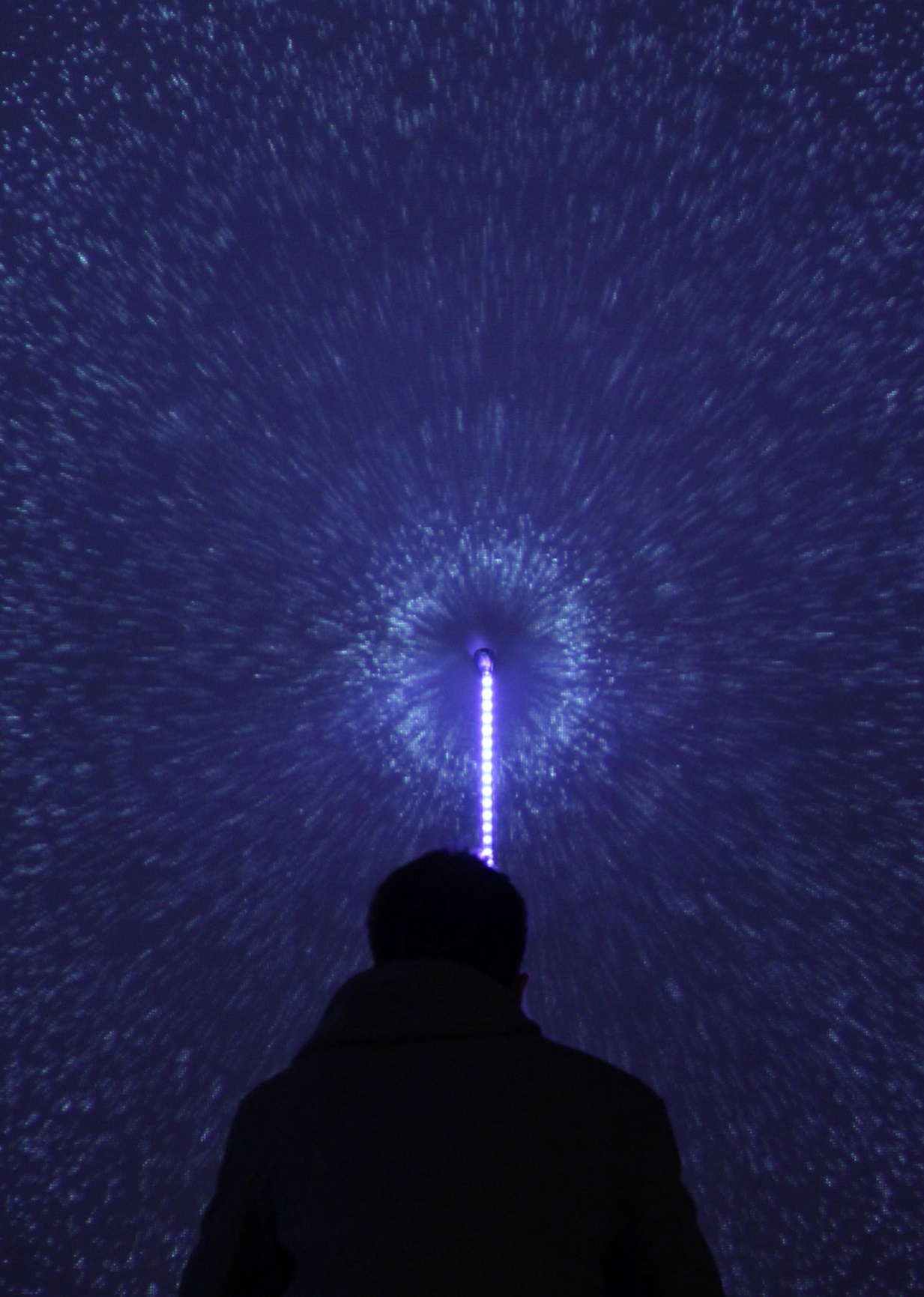 No âmbito do projeto, um dispositivo específico foi projetado e criado para coletar os murmúrios do público. Esse objeto foi chamado de “câmara de eco”, fazendo referência à mitologia grega. Ele representa não apenas a técnica crucial do dispositivo “Murmur”, mas também seu aspecto mágico, transformando as ondas sonoras em ondas de luz.