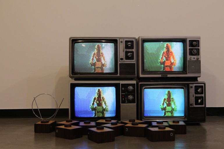 Máquinas não compreendem a linguagem humana, ao passo que até mesmo animais minúsculos têm lampejos de compreensão sobre nossas intenções por meio de tons de voz. Máquinas, porém, são incapazes de fazer isso. Para lhes dar algum comando, são necessárias várias etapas de tradução até que suas palavras finalmente sejam convertidas em uma série de ons e offs. Para acelerar essas traduções, programadores inventaram numerosos dispositivos cujos princípios de funcionamento fogem ao nosso entendimento. Assim, nós, artistas, não compreendemos como essas traduções funcionam nem o sentido das palavras resultantes. Nós precisamos de metáforas, não de interpretações ou compilações. O “Modern Video Processor” é uma metáfora skeuomorphic para recordar aquela época simples na qual falar com máquinas se resumia a ligar cabos, girar botões e sintonizar no ponto desejado. Ao emendar módulos de madeira que produzem efeitos de vídeo como o sintetizador de áudio dos anos 1980, pode-se obter uma série de efeitos de vídeo em cascata em tempo real, criando combinações ilimitadas de vídeos em aparelhos de TV de tubo marrom. O modo como isso funciona é simplesmente uma metáfora e nada tem a ver com o que há no interior dos painéis de circuito desses minúsculos videotradutores. Seu instinto, porém, irá guiá-lo sobre o que acontece na tela da TV enquanto você brinca com eles.