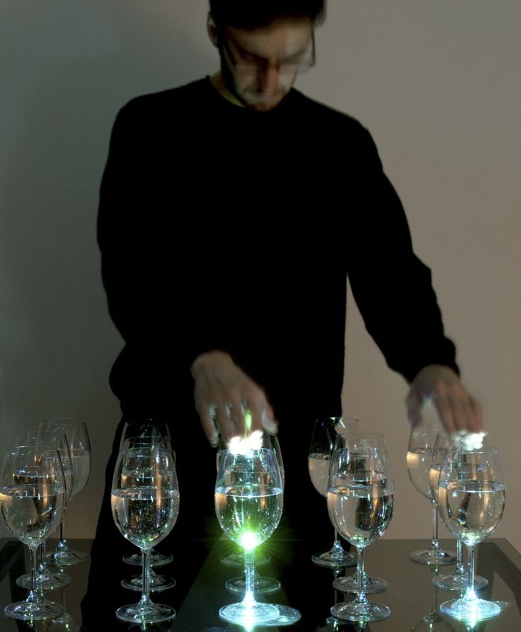 A partir do movimento das mãos sobre as taças, pode-se definir novos padrões sonoros. Estimulando os sentidos, surgem novas possibilidades criativas, através da experiência individual de cada espectador. Nesse jogo gerado pela representação de algo tão antigo, propomos uma releitura e uma justa homenagem, a Franklin e à sua harmônica.