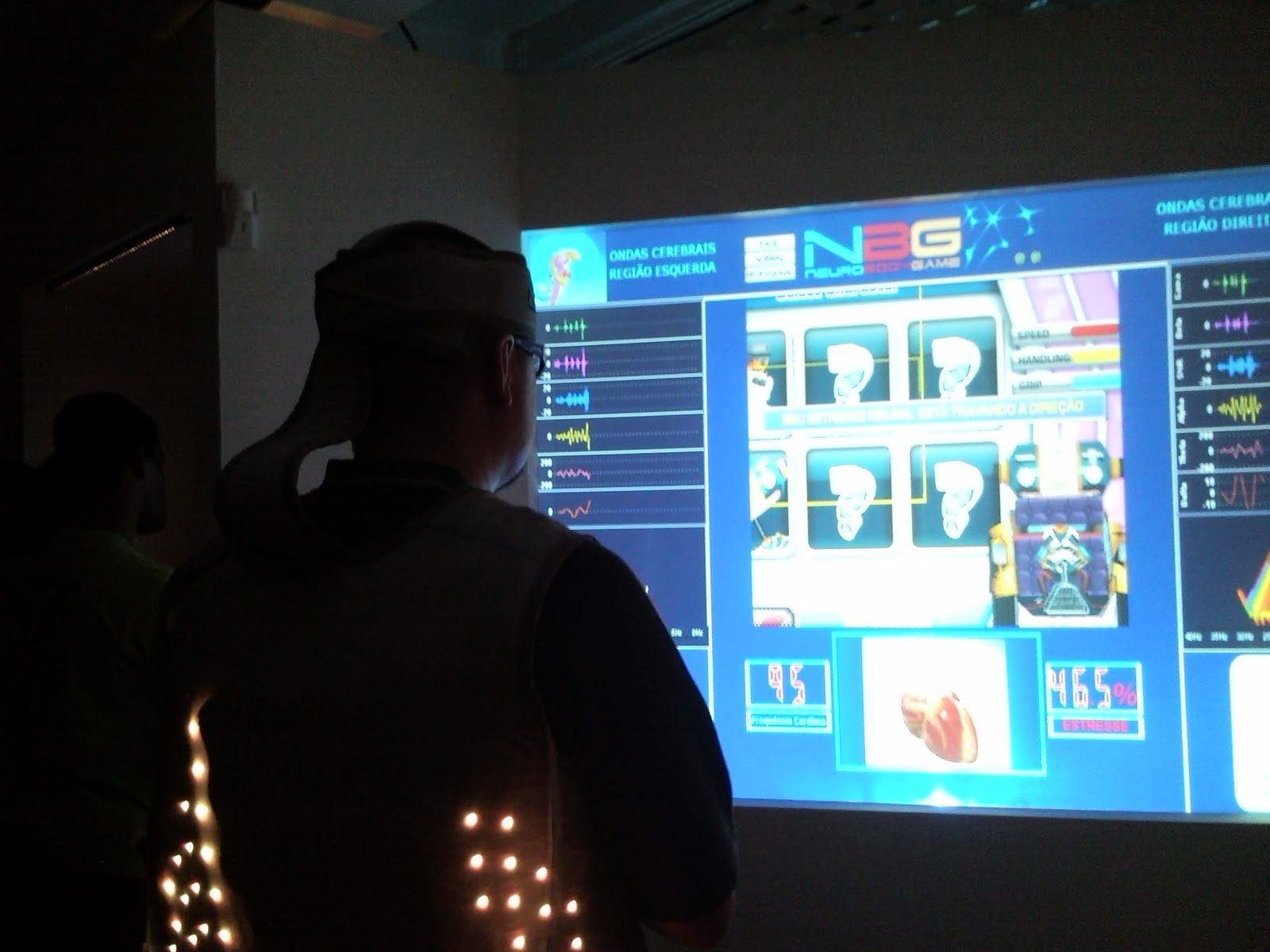 “BioBodyGame” consiste em um computador vestível que permite ao usuário jogar games utilizando seus sinais neurofisiológicos. Constitui-se em uma interface wireless para interação biométrica com games embarcados no sistema, na qual tanto os games quanto o vestível reagem à emoção do usuário no momento da sua interação. A jogabilidade torna-se facilitada ou dificultada a partir do estado emocional do usuário, bem como o vestível interpreta as emoções do usuário e reage a elas alterando sua cor (frente/costas) e aplicando vibrações (costas). Um usuário extremamente tranqüilo, extremamente atento e extremamente concentrado terá sua jogabilidade extremamente facilitada e seu “BioBodyGame” reagirá apresentando-se na cor azul. Já um usuário tranqüilo, atento e concentrado terá sua jogabilidade facilitada, enquanto seu “BioBodyGame” assumirá a cor verde. Um usuário tenso, desconcentrado ou nervoso terá sua jogabilidade dificultada e seu “BioBodyGame” reagirá tornando-se amarelo e aplicando uma leve vibração em suas costas. Já um usuário muito tenso, muito desconcentrado ou muito nervoso terá sua jogabilidade altamente dificultada e seu “BioBodyGame” reagirá tornando-se vermelho e disparando uma vibração intensa em suas costas. Sensores incorporados ao vestível mapeiam os sinais neurofisiológicos do interator. Dois sensores de resposta eletrodérmica analisam o perfil psico-fisiológico do usuário, a partir da leitura dos seguintes parâmetros biométricos: controle de ansiedade; variabilidade emocional e reposta emocional. E um sensor cardíaco analisa o fluxo sanguíneo; o oxigênio funcional; a freqüência cardíaca e a atividade simpática e parassimpática deste usuário. O design do “BioBodyGame” é ajustável a diferentes biotipos, diminuindo e expandindo em função do corpo do usuário. E apresenta como principal desafio ser ergonômico, uma vez que todo e qualquer desconforto pode provocar alterações nos sinais neurofisiológicos, comprometendo a fidelidade das informações biométricas adquiridas.