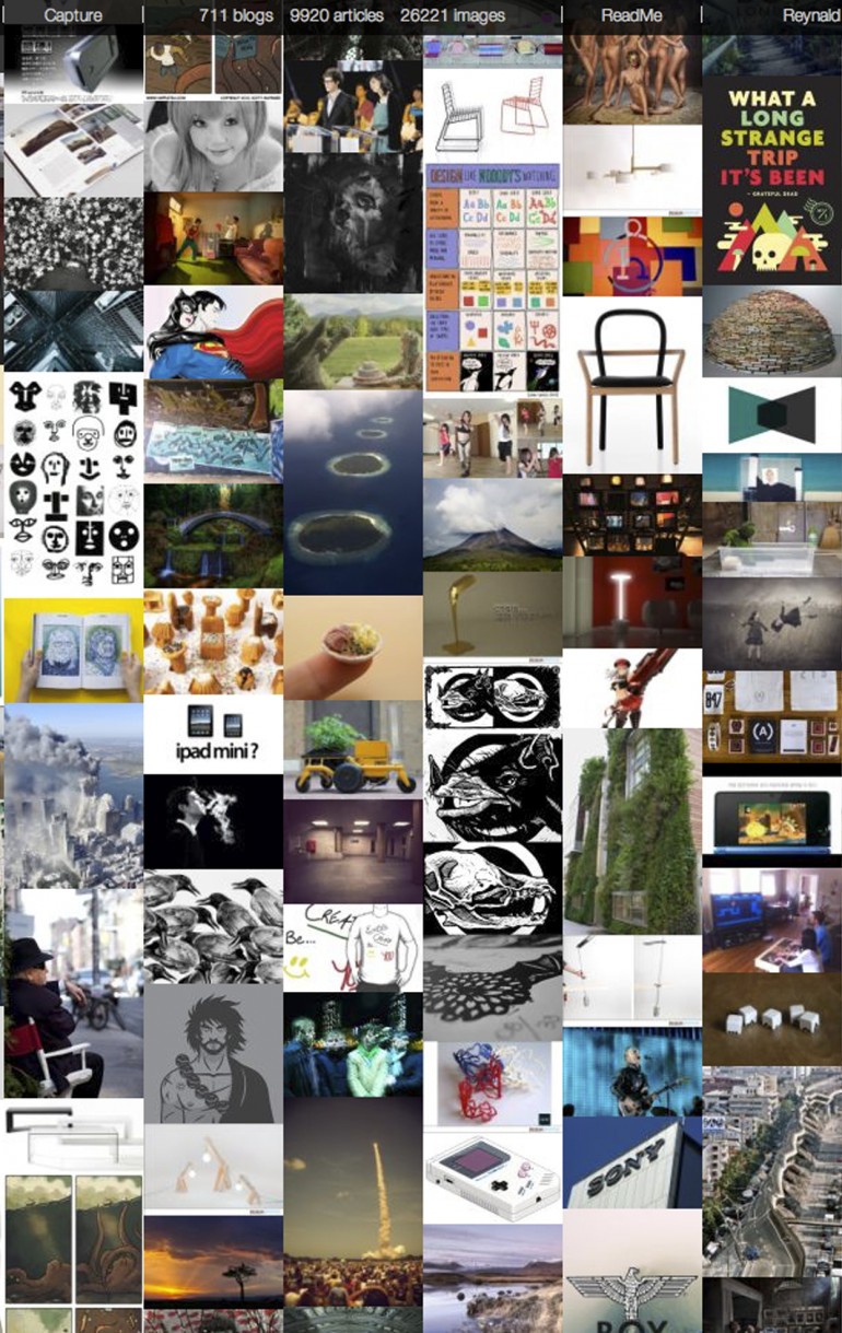 “GridFlow” reúne sob a forma de um mosaico as imagens de artigos cujos fluxos RSS são gravados. Dessa forma, o projeto mostra uma fração de tempo sem começo nem fim como um rizoma, e revela o espírito da época («Zeitgeist») pela acumulação ou repetição de elementos marcantes da atualidade da web.