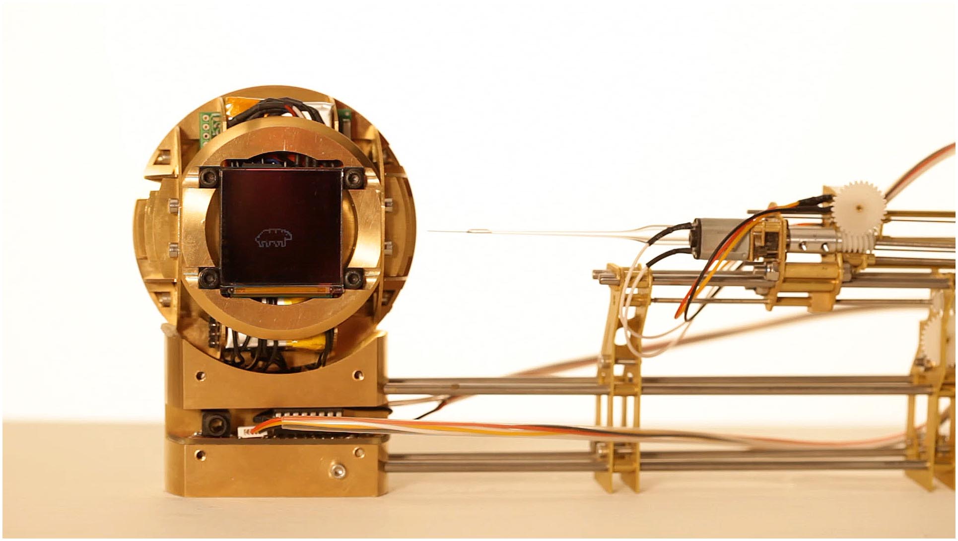 O que é “Tardigotchi”? “Tardigotchi” é uma obra de arte que apresenta dois animais de estimação: um organismo vivo e um avatar vivo. Esses dois seres díspares se encontram como os habitantes improváveis de um ambiente de computação portátil. O corpo principal desse ambiente é uma esfera metálica que abriga o avatar vivo em uma tela de LED e o tardígrado em um slide preparado. Um tardígrado é um microrganismo comum que mede meio milímetro de comprimento. O avatar vivo é uma caricatura desse tardígrado; seu comportamento é parcialmente autônomo, mas também reflete uma quantidade considerável de expressão diretamente das atividades do tardígrado (como comer). Essa esfera portátil se refere de maneira divertida ao famoso brinquedo Tamagotchi da década de 1990. O que é interessante nesse brinquedo é como ele popularmente incentiva o comportamento do dono do animal através de um dispositivo que é ostensivamente mais parecido com um telefone celular do que um Chartreux. A simples interação gera ligação emocional? Podem os sentimentos de afeição florescer do ritual de cuidar da persistência de um padrão? A vida biológica faz diferença? Um dono de “Tardigotchi” cuida de uma criatura real e uma virtual ao mesmo tempo. Ao apertar um botão, o animal virtual é alimentado, o que por sua vez alimentará o tardígrado. O “Tardigotchi” tem uma presença social na web: enviar um e-mail para o personagem virtual aciona uma lâmpada de aquecimento, liberando um sinal momentâneo de calor para o tardígrado, enquanto leva o tardígrado de pixels a se reclinar e banhar-se em raios solares animados. O “Tardigotchi” aplica um bálsamo aos nossos desejos de cuidado e carinho através de um design único que mistura simbioticamente vida biológica e artificial em uma única interface/entorno. Também serve como um lembrete do lugar especial que os seres humanos têm na comunhão com outros animais, talvez igualmente com os artificiais. Juntamente com os habitantes de “Tardigotchi”, nós e todos os outros seres vivos somos vizinhos que subsistem em uma esfera de vida incrivelmente precária chamada Terra.