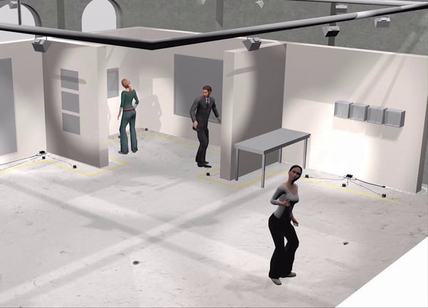 Esse trabalho se apropria das típicas sinalizações de segurança e mensagens sonoras normalmente encontradas em aeroportos e estações de metrô. A animação se trata de uma breve mostra em simulação 3d da obra “Linhas de Contenção”, uma instalação sonora virtual que intervêm simbolicamente no espaço consagrado da arte.