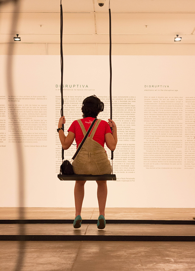 “Swing” traz de volta essas sensações e transforma um sonho em realidade: o sonho de voar. Assim, o balanço se torna um componente físico para uma instalação interativa. A utilização de um óculos 3D intensifica a experiência de balançar com realidade virtual, criando uma aventura
