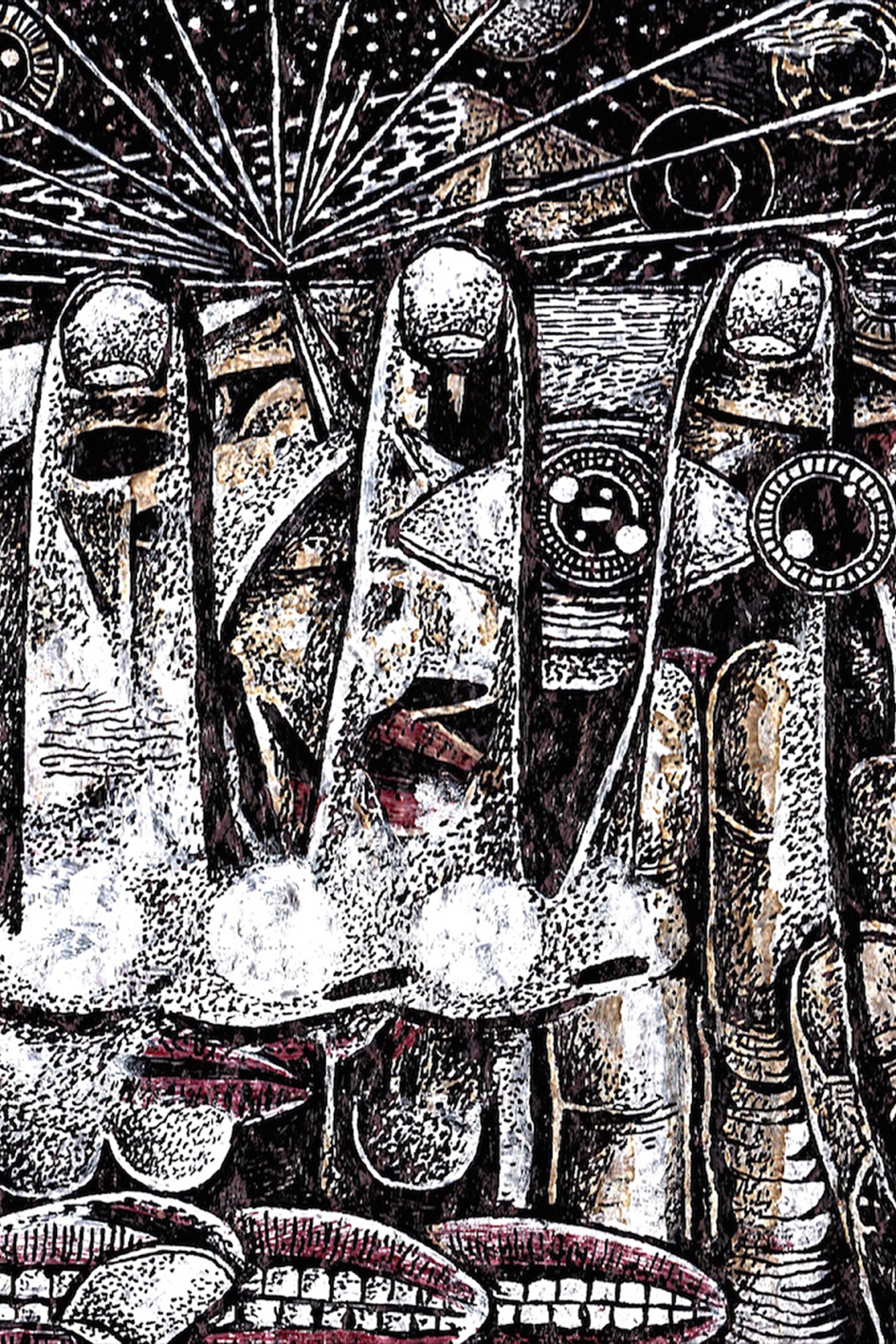 Jake Fried trabalha com tinta, iluminação intensa e café para gerar visões alucinantes, modificando e filmando a imagem repetidamente para criar uma animação mental que evolui em um ritmo frenético.