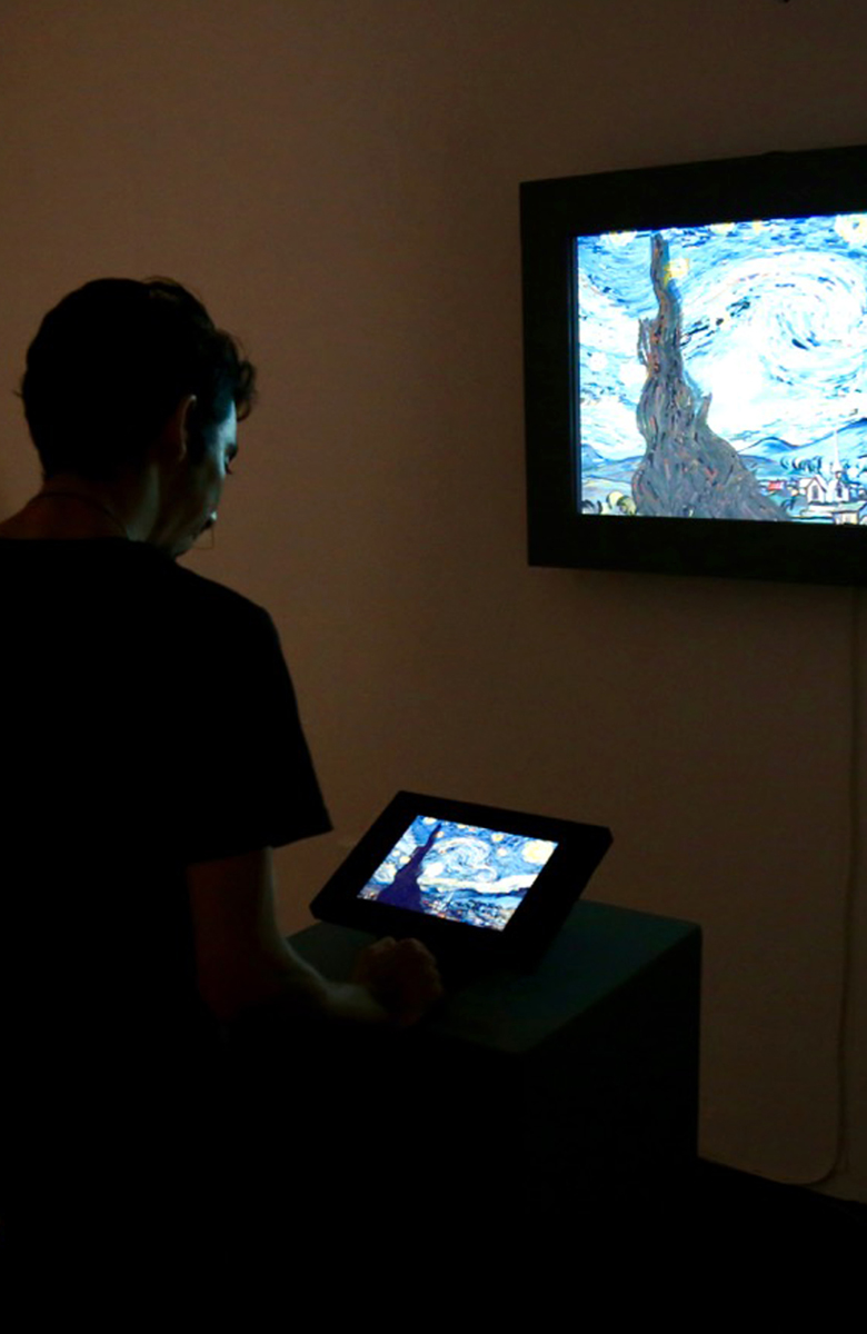 Esta animação interativa é baseada na obra-prima de Van Gogh “Noite Estrelada”. Os fluxos icônicos da pintura original ganham vida por meio de animação. Além disso, o espectador pode interagir com a pintura, alterando os fluxos ao tocá-la. Toda influência é temporária e, gradualmente, a animação volta a seu estado original. A trilha sonora ao fundo também reage ao fluxo. A instalação proporciona uma interpretação imersiva da obra-prima original que pode ser usada para “redescobrir” a arte clássica e ter finalidades educativas.