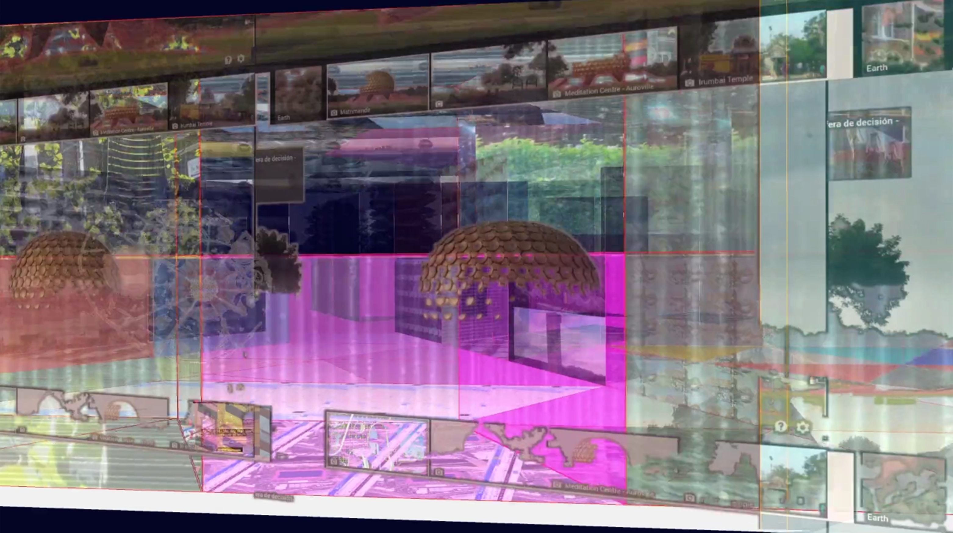 Visuais urbanos se fundem a vídeos deslocados de YouTube; vozes sem corpo; arquitetura futurística revestida com árvores; domos geodésicos e uma complexa paisagem despovoada com uma forma central esférica ambígua. Tudo enfatiza a natureza fragmentária de material encontrado online e a saturação de imagens e informações de hoje em dia.