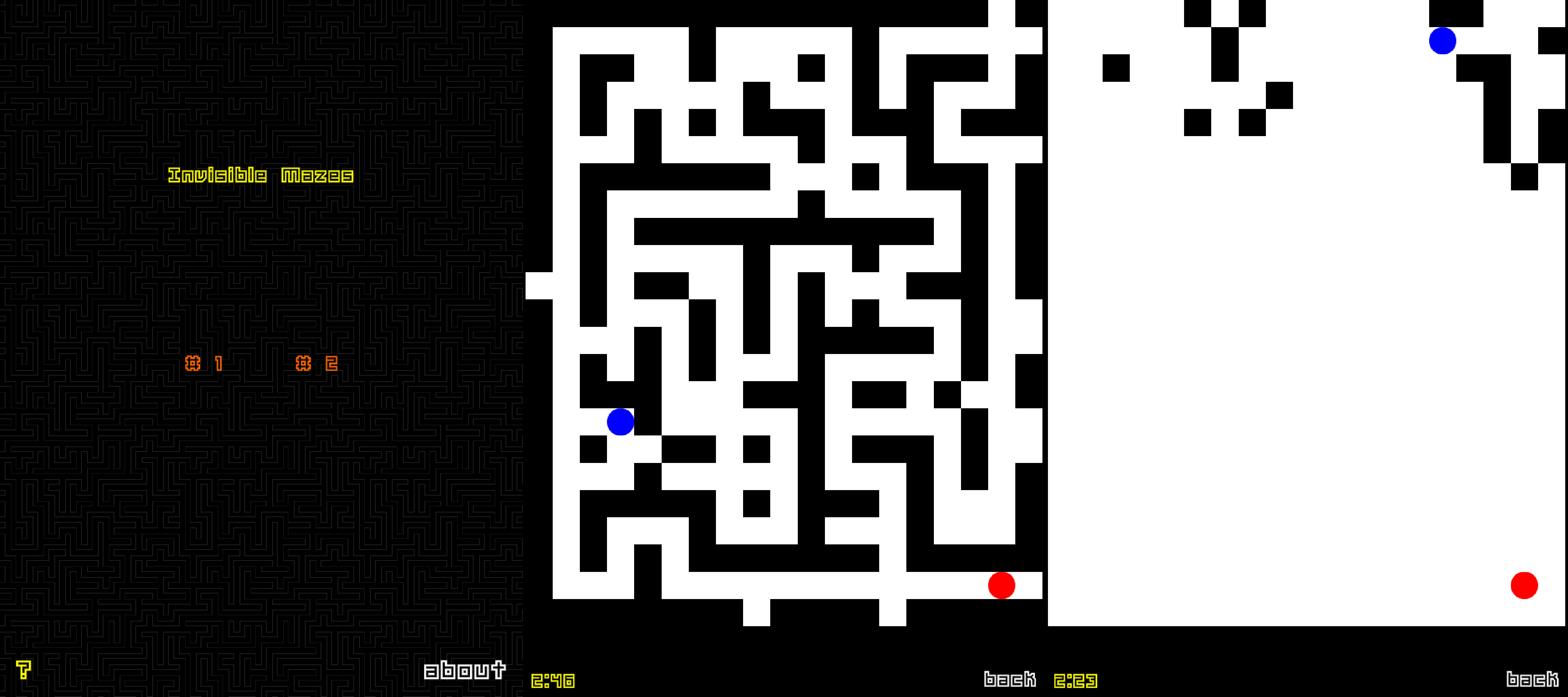 “Labirintos Invisíveis” é uma nova versão do jogo originalmente desenvolvido em 2008, com base no conto Os Dois reis e os Dois Labirintos, de Jorge Luis Borges. O jogo apresenta duas mecânicas opostas.