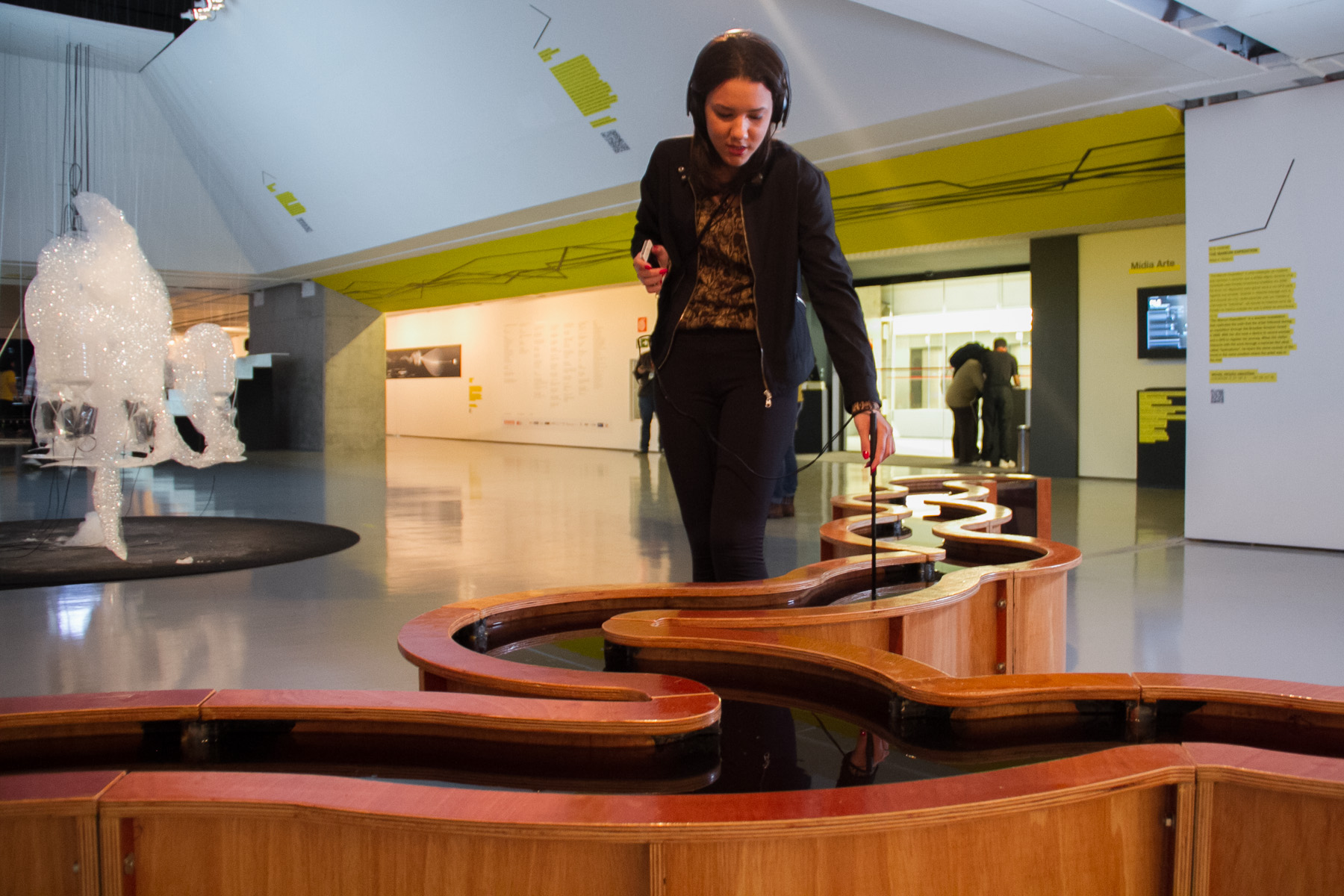Uma instalação de madeira replica o caminho que a artista Els Viaena seguiu durante uma expedição pela floresta Amazônica brasileira em 2009. Ela levou consigo um dispositivo para gravar sons e um GPS para registrar sua jornada. Os três braços de madeira da escultura estão cheios de água. Um fone de ouvido e uma vareta em forma de martelo, o “hidrofone”, permitem que você “escute” a água. Uma vez que você insere a vareta na água e move-se pelas voltas e mais voltas da escultura, os sons que Viaene gravou durante a expedição são reproduzidos. “The Mamori Expedition” catapulta o espectador para o meio da floresta Amazônica e o convida a explorar o rio e seus sons de maneira muito tátil.