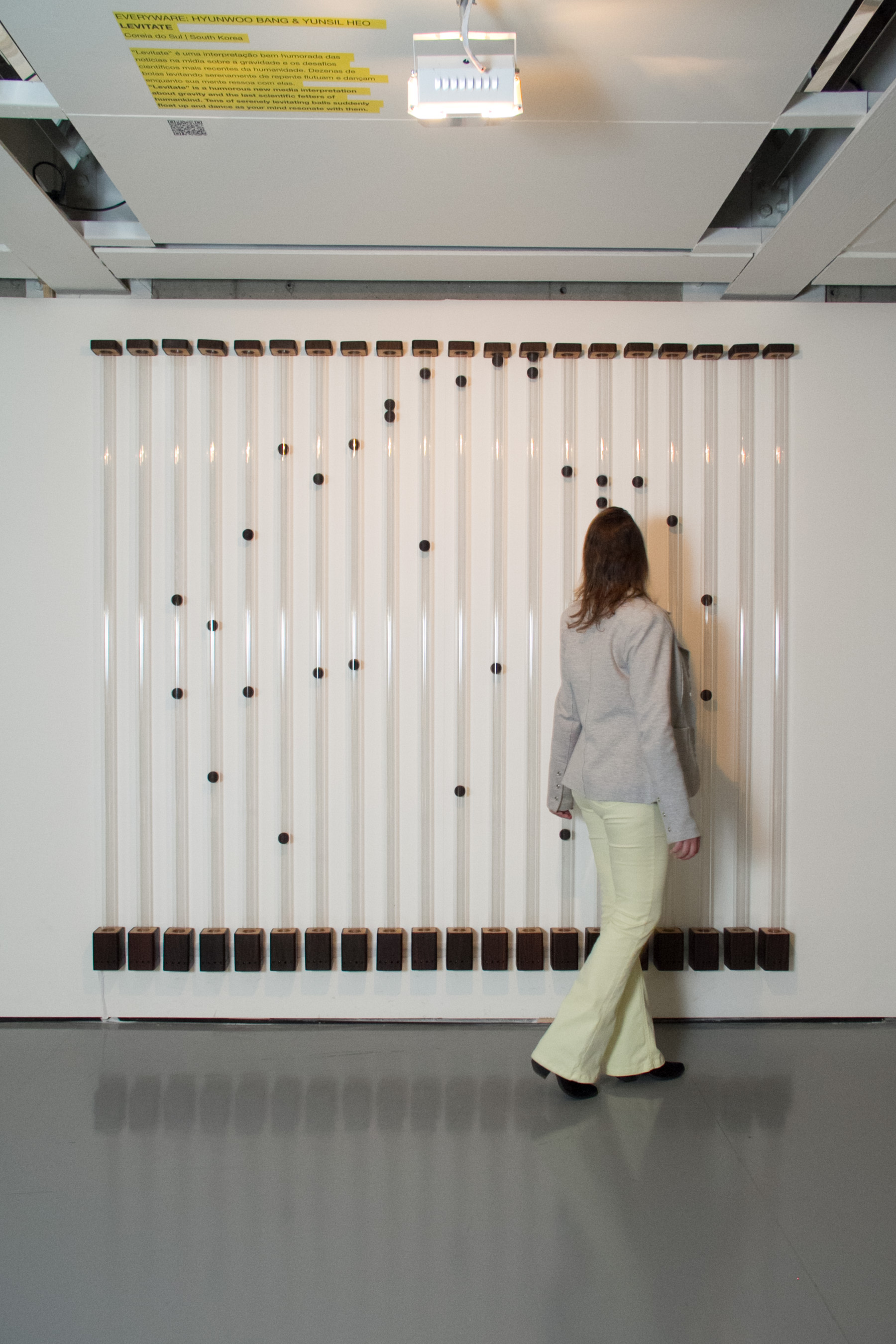 O lorde Kelvin, amplamente conhecido por ter determinado o valor correto da temperatura absoluta ou termodinâmica, acreditava firmemente que máquinas mais pesadas do que o ar não podiam voar. Neil Armstrong entrou em uma espaçonave de aço, voou no ar, atravessou o universo, esteve na superfície da lua e de lá contemplou a Terra. “Levitate” é uma interpretação bem humorada das notícias na mídia sobre a gravidade e os desafios científicos mais recentes da humanidade. Dezenas de bolas levitando serenamente de repente flutuam para cima e dançam enquanto sua mente ressoa com elas. Como você pode saber se isso foi causado pelo fenômeno eletromecânico criado pelas placas de circuito elétrico ou se foi apenas o efeito de sua psicocinestesia? Uma galeria de arte não é um museu de ciências. Talvez não tenha sido a psicocinestesia que fez as bolas levitarem e a coisa toda pode não ser um fenômeno sobrenatural. Mas como ter certeza de que a frase “Sua mente pode fazer as bolas levitarem” é mais incorreta do que a afirmação do lorde Kelvin de que “máquinas mais pesadas do que o ar não podem voar”?