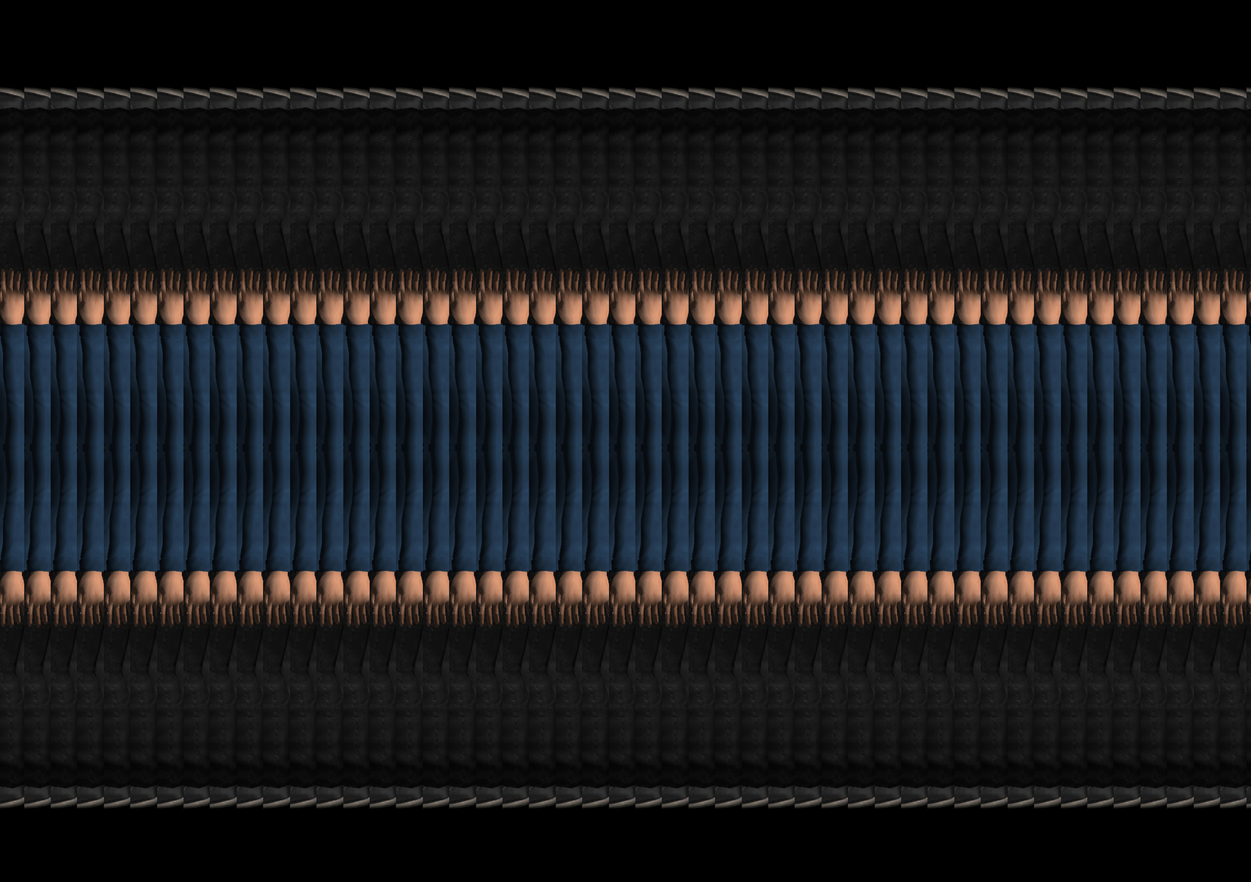 “The Infinite Walk” é uma videoinstalação interativa feita em uma plataforma de videogame. Um avatar predeterminado encontra-se em um espaço negro e vazio. Através de um game pad, é possível andar no vácuo. Assim que andamos em qualquer direção, o personagem começa a se duplicar e a cena torna-se uma ilusão abstrata, como em um arranjo sequencial de imagens espelhadas. As imagens duplicadas desaparecem quando o jogador anda de volta pelo mesmo caminho e chega ao ponto inicial.