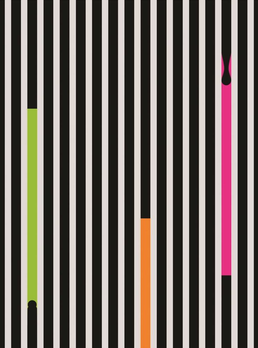 Emoções representadas graficamente como linhas vivamente coloridas que gotejam sem parar. Há espaços repletos de cores puras, algumas das quais serão absorvidas pela escuridão, enquanto outras emergirão dela. Cuidado! Tinta fresca pode manchar nosso estado de ânimo.