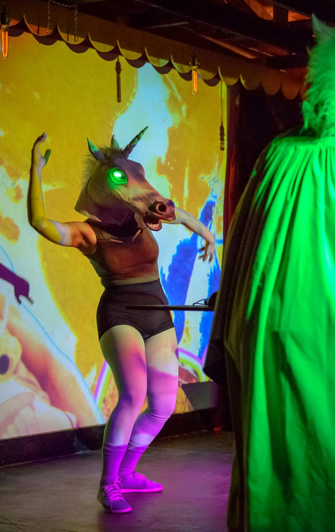 Total Unicorn é um grupo de performance multidisciplinar que realizam composições eletrônicas originais, coreografias interpretativas, animações vibrantes e videoclipes manipulados e sequenciados ao vivo. As funções de saída combinadas como um teatro de arte altamente dançante que consiste em diversas peças menores vão de narrativas de estrutura firme até abstrações malucas.
