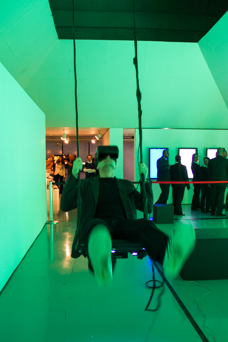 “Swing” traz de volta essas sensações e transforma um sonho em realidade: o sonho de voar. Assim, o balanço se torna um componente físico para uma instalação interativa. A utilização de um óculos 3D intensifica a experiência de balançar com realidade virtual, criando uma aventura imersiva única que nos leva a um mundo feito de aquarela.