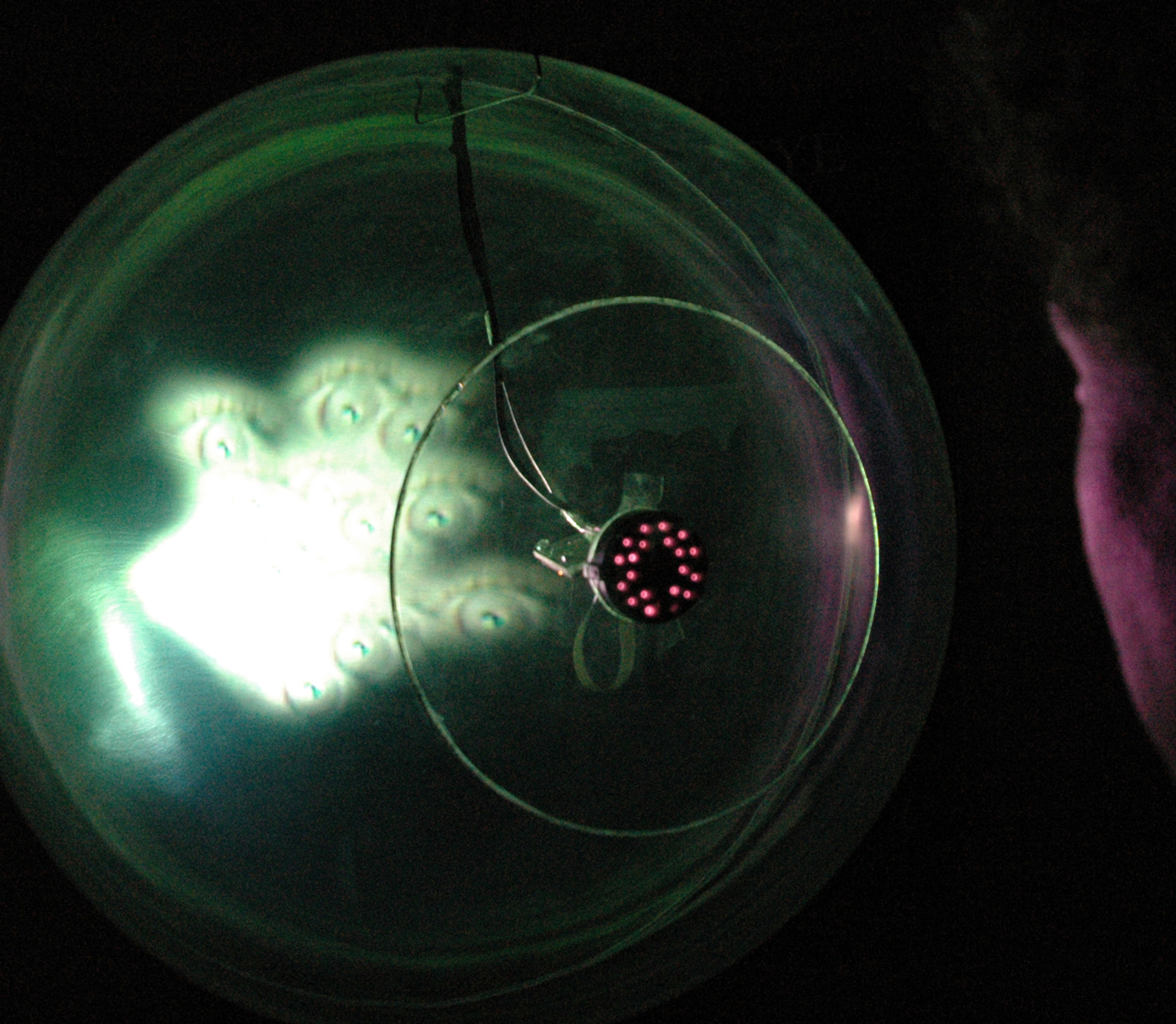 “Expanded Eye” e? uma escultura sensi?vel, luminosa e interativa composta por um olho gigante transparente suspenso pelo teto. Este olho olha para o usua?rio com uma ca?mera infravermelha e projeta os olhos desse usuário dentro da escultura que reconhece o movimento de piscar dos olhos e gera uma animac?a?o baseada nisto. Cada piscar do usua?rio multiplica o nu?mero de olhos na projec?a?o de uma maneira fragmentada, hexagonal e deslocada. O objetivo da obra e? expandir a visa?o dos seres humanos convidando-os a serem observados pelos seus pro?prios olhos atrave?s de uma grande interface transparente que multiplica os pontos de vista de quem as usa. A escultura busca o olhar para dentro em um contexto ma?gico onde percepc?a?o une com autorreflexa?o e observac?a?o.