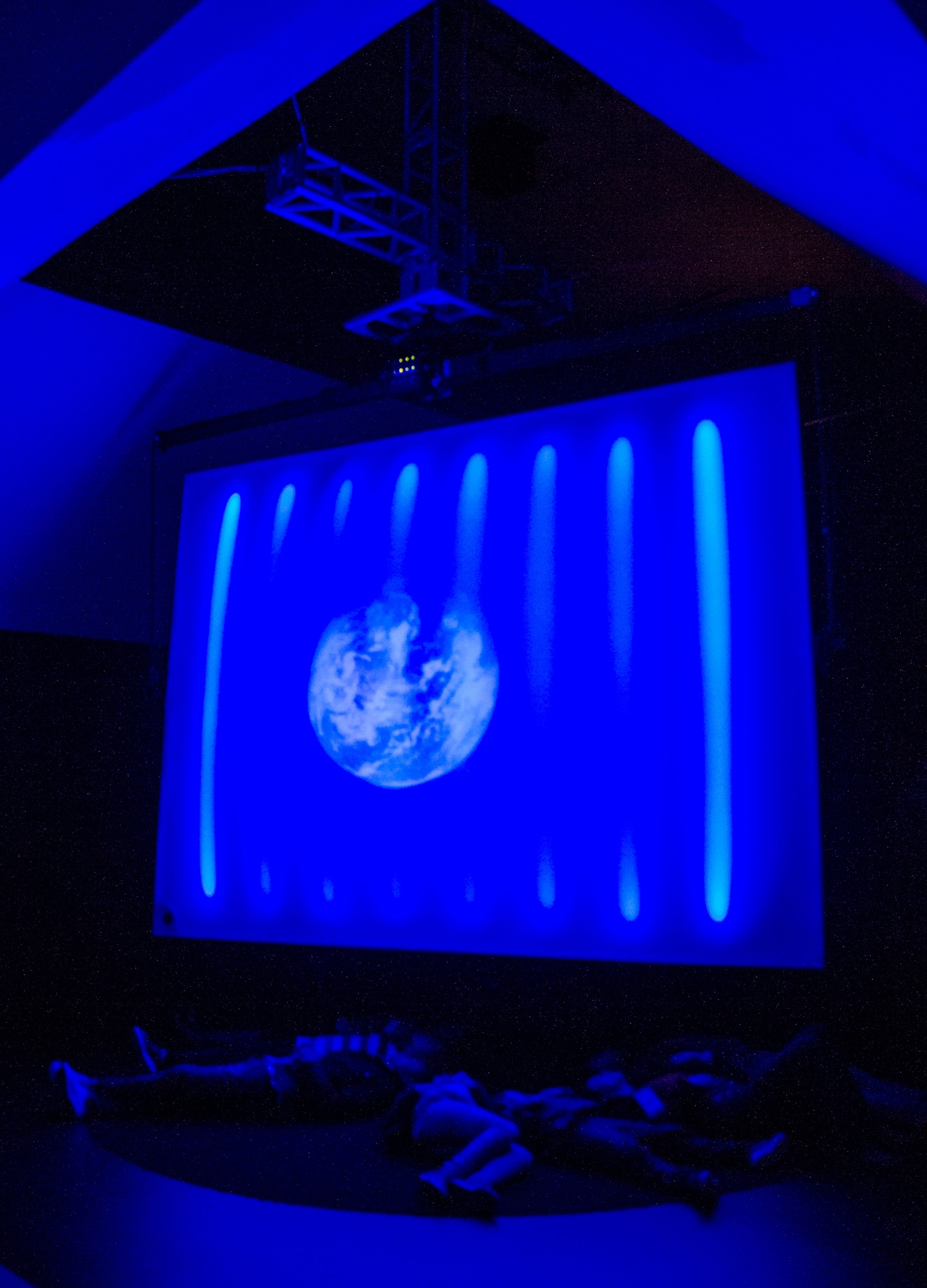 A instalação “Overview” consiste em uma tela de vídeo motorizada que pode lentamente se mover, se inclinar e se elevar. A tela tem 3m x 4m de largura e luz de LED na parte traseira. Um globo abstraído é projetado na parte dianteira.