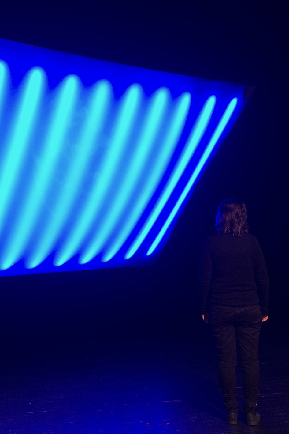 A instalação “Overview” consiste em uma tela de vídeo motorizada que pode lentamente se mover, se inclinar e se elevar. A tela tem 3m x 4m de largura e luz de LED na parte traseira. Um globo abstraído é projetado na parte dianteira.