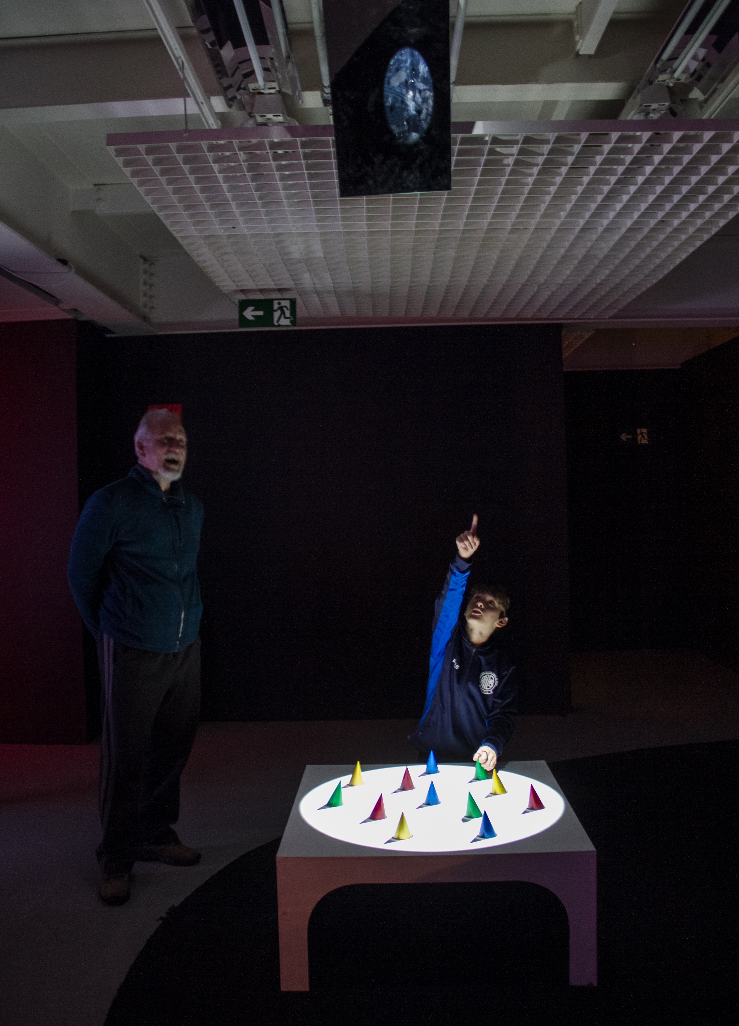 As sombras computadorizadas projetadas na mesa permanecem imóveis, como acontece com as sombras, mas, à medida que o tempo passa, algumas delas começam a tremer. Ao tocar diretamente alguns objetos que são colocados na mesa, vários tipos de padrões aparecem em imagens de sombra computadorizadas. Enquanto estas coisas estão acontecendo, o espectador é iluminado pelo projetor do teto. Assim, a sombra do próprio espectador também é projetada na mesa, bem como sombras computadorizadas. Quando a falsa sombra criada por gráficos computacionais e a verdadeira sombra do espectador são projetadas na mesma imagem plana, é possível reconhecer sua sombra e sua existência mais uma vez.