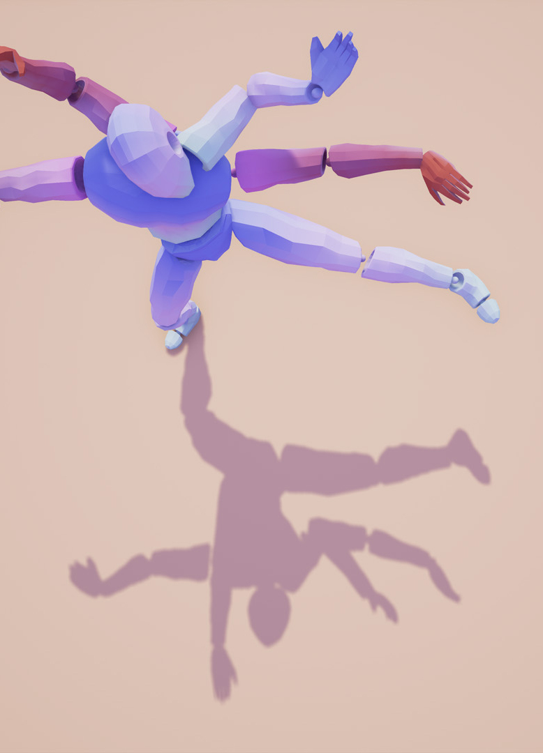 Se as leis da física e da anatomia do corpo humano não se aplicam num mundo novo, quais as opções para a coreografia? Nesta primeira experiência, o Studio APVIS colabora com o coreógrafo Jack Timmermans (De Stilte, NL) e explora a parceria entre animador e coreógrafo. Além disso, questionamos o papel do visitante e da interação. Um novo vocabulário é criado, tanto para o coreógrafo quanto para o animador. Com um traje de captura de movimento, dois corpos dançantes foram digitalizados e, através do HTC Vive, o espectador é capaz de construir seu próprio corpo. Quando a música para, o corpo cai aos pedaços. A performance existe apenas uma vez, revelada a um único par de olhos. Uma experiência íntima em que o dançarino cerca o espectador. Apesar de ser apenas uma presença digital, ela pode tornar-se bastante intimidadora.