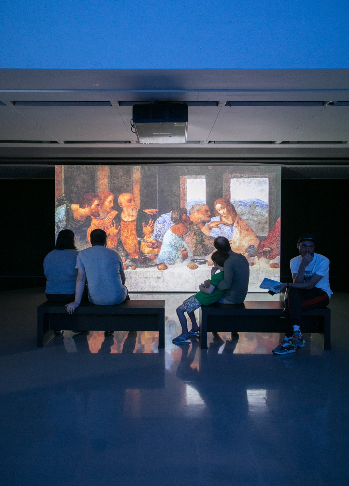 ‘The Last Supper Alive’ é um conto emocionante, onde os personagens do afresco ganham vida e passam a se movimentar, de maneira suave e elegante, dentro de uma atmosfera etérea. A sala em que os personagens estão inseridos também é parte central deste trabalho, sua geometria e solenidade projetam a imaginação do espectador para dentro da pintura.