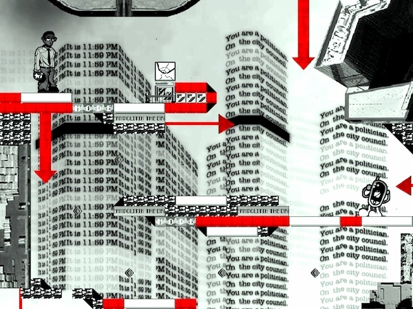 Neste game politizado, você direciona um político municipal para dentro da arquitetura de seu próprio sonho um minuto antes da meia-noite. Para combater o desejo da nação de ter a visão impalpável de uma utopia onírica, o político deve ter um sonho próprio para visualizar a solução. Sua aventura pelo espetáculo tremulante da sociedade começa às 23h59 e termina um milésimo de segundo depois. Inspirado na literatura de Guy Debord e de Stephen Duncombe, e contextualizado para a época atual.