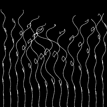 A animação em “Flora” é gerada por sobreposição de ondas senoidais que viajam por meio de uma sequência de linhas. Este princípio da onda aparece frequentemente na natureza quando a energia é transmitida através de um meio como a água, o ar ou simplesmente uma corda. A estética resultante combina a precisão computacional com um jogo orgânico e tende a desencadear diversas associações na mente do espectador.