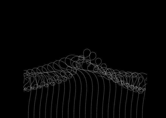A animação em “Flora” é gerada por sobreposição de ondas senoidais que viajam por meio de uma sequência de linhas. Este princípio da onda aparece frequentemente na natureza quando a energia é transmitida através de um meio como a água, o ar ou simplesmente uma corda. A estética resultante combina a precisão computacional com um jogo orgânico e tende a desencadear diversas associações na mente do espectador.