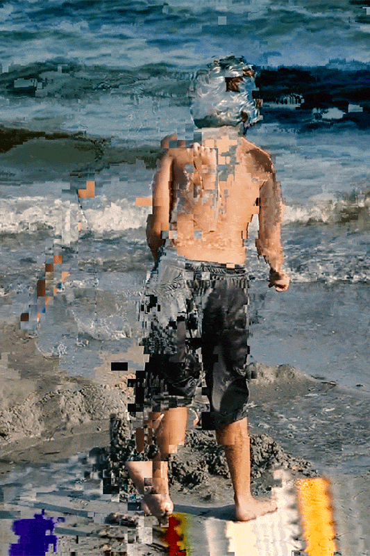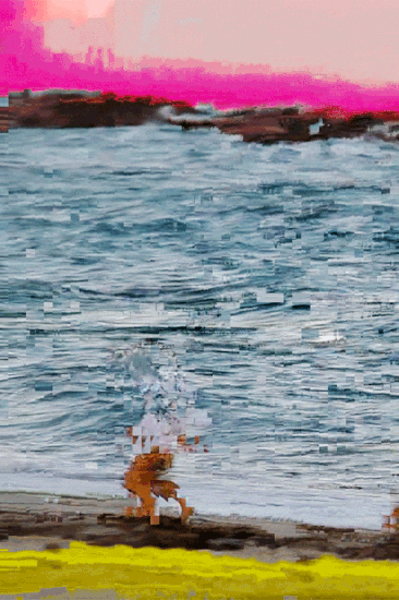 “Apocalypse Beach” é uma série de GIFs em forma de um micro-documentário retratando a praia americana e os breves momentos de seus visitantes. Essas vinhetas em loop foram gravadas em 2016 em várias praias da Flórida e da Nova Inglaterra. Depois, os vídeos foram convertidos para o codec Xvid e corrompidos usando um processo de datamosh no Avidemux.
