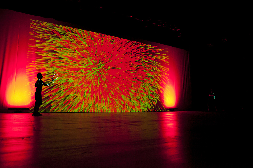 Nosso conceito une estética, atividade física e entretenimento. Enquanto praticam uma vigorosa atividade física, os jogadores controlam todos os eventos audiovisuais que ocorrem no espaço/tempo do jogo. O espaço que sedia o evento é colorido com luz controlada pelos movimentos dos jogadores. Suas raquetes e braços são decorados com fios luminescentes eletrônicos e a peteca (speeder) com um LED brilhante, gerando efeitos cênicos dinâmicos e bem vívidos. No início de cada jogo, os usuários escolhem em um “iPod touch” uma trilha sonora associada com visuais e cores para o sistema de iluminação do ambiente. A possibilidade de literalmente desenhar com este jogo dá um caráter original e inovador ao SynDyn: ser simultaneamente um esporte, uma diversão e um evento artístico que funde estética, atividade física, tecnologia e entretenimento.