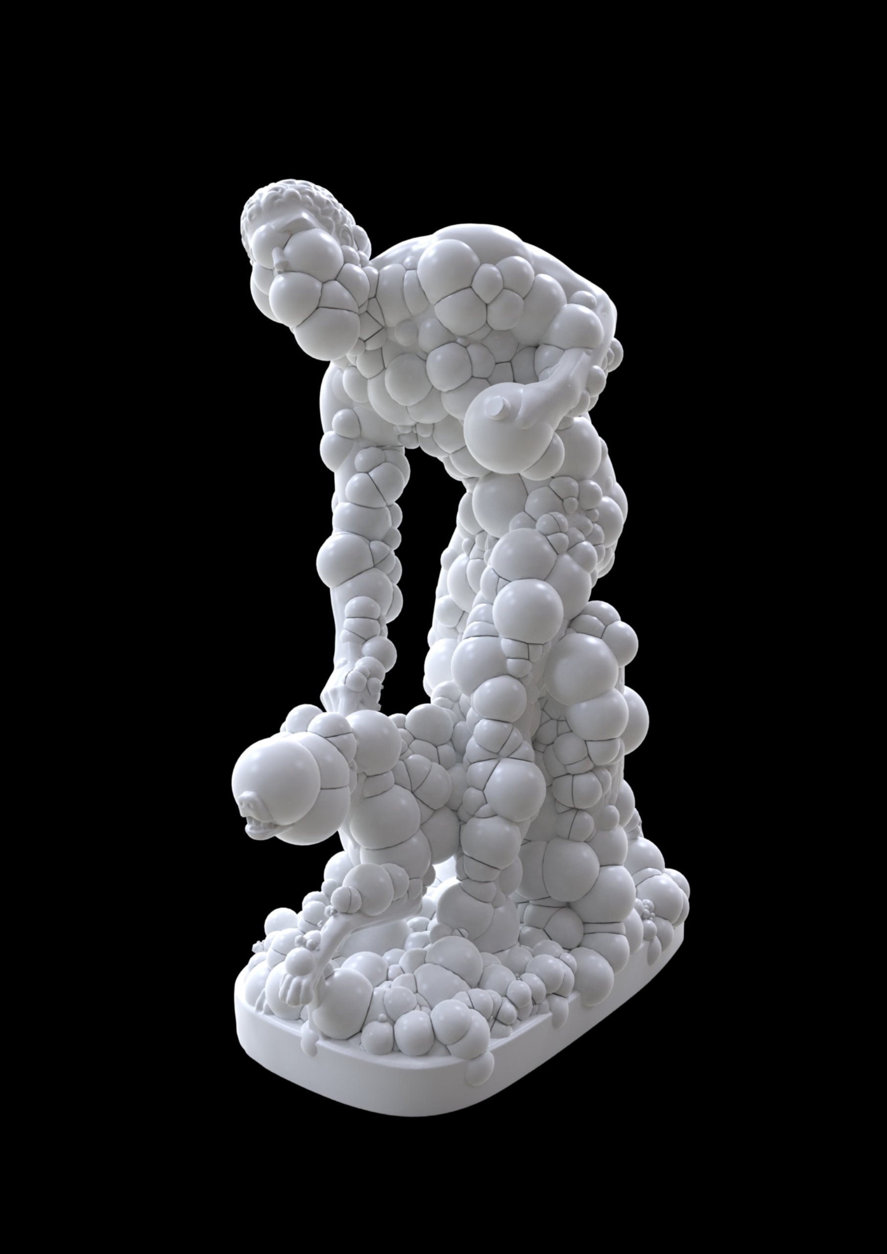 O trabalho Hunter and Dog, de Frederik De Wilde, interroga as interseções entre a evolução humana, a engenharia genética e a hibridização entre tecnologia e biologia. De Wilde reinterpretou a escultura histórica sob a lente da teoria pós-evolucionária, engajando-se com debates contemporâneos sobre CRISPR, biologia sintética e as implicações da modificação genética dirigida pelo ser humano. CRISPR, a revolucionária tecnologia de edição genética, introduziu uma ruptura sem precedentes na trajetória da evolução. Não mais limitados pelos lentos mecanismos da seleção natural, os seres humanos agora possuem a capacidade de intervir diretamente em seu próprio blueprint genético, marcando uma transição para um paradigma pós-darwiniano. Contudo, esse poder tecnológico não é neutro; ele emerge de uma linhagem histórica de investigação científica profundamente entrelaçada com o colonialismo. A história da manipulação genética é inseparável do bioprospecto colonial, da eugenia e dos experimentos médicos exploratórios realizados em populações marginalizadas. Regimes coloniais trataram corpos — tanto humanos quanto não humanos — como locais de intervenção, controle e otimização, uma lógica que persiste nos atuais arcabouços biotecnológicos. O discurso pós-colonial revela como a engenharia genética corre o risco de perpetuar esses legados, reforçando assimetrias de poder entre aqueles que exercem controle biotecnológico e aqueles submetidos às suas consequências. CRISPR, ao oferecer a promessa de erradicar doenças e expandir o potencial humano, também suscita preocupações éticas acerca da estratificação genética, do biocapitalismo e da mercantilização da própria vida. O trabalho de De Wilde visualiza essas tensões, tornando visíveis os processos de divisão celular e morfogênese — os próprios mecanismos biológicos agora sujeitos à intervenção humana. Hunter and Dog não se limita a retratar a transformação de uma forma neoclássica, mas especula sobre o futuro do corpo humano como um local de evolução projetada. Sob uma perspectiva decolonial, a obra questiona quem detém a autoridade para editar a vida e com quais finalidades. Ela desafia as narrativas tecno-utópicas que enquadram a modificação genética como um progresso inevitável, enquanto obscurecem suas implicações sociais, éticas e ecológicas. Ao hibridizar arte, ciência e tecnologia, Hunter and Dog nos obriga a confrontar as incertezas de um futuro impulsionado pelo CRISPR: a edição genética reforçará as desigualdades existentes ou poderá ser decolonizada e democratizada? Como navegaremos essa fronteira pós-natural sem perder as dimensões humanas — e mais que humanas — de nossa existência? O trabalho de De Wilde nos convida a esse espaço especulativo, onde o caçador, o cão e o algoritmo se fundem em uma visão de um mundo em que a biologia não é mais destino, mas um espaço de agência contestada.