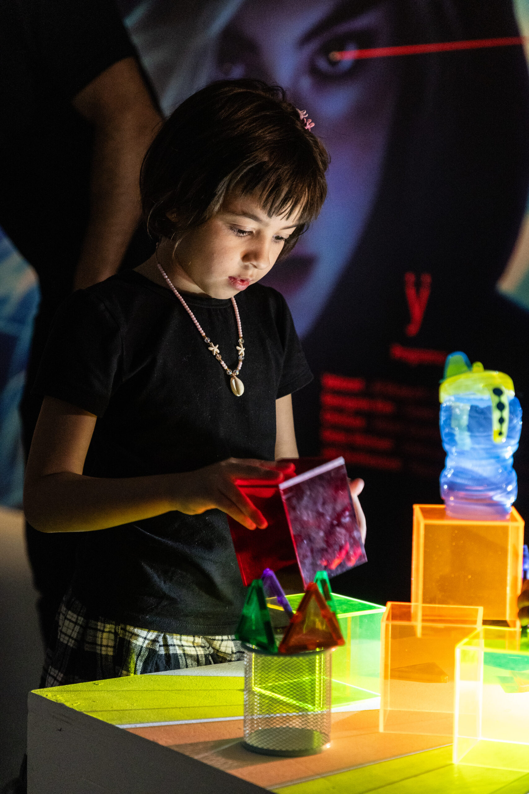 Há uma tendência chamada pareidolia, em que o cérebro humano identifica padrões familiares em objetos. Nesta obra, imagens e legendas são geradas em tempo real a partir das sombras de brinquedos e itens cotidianos, estimulando a imaginação individual. A peça age como uma entidade que provoca associações mentais, em vez de focar na produção humana.