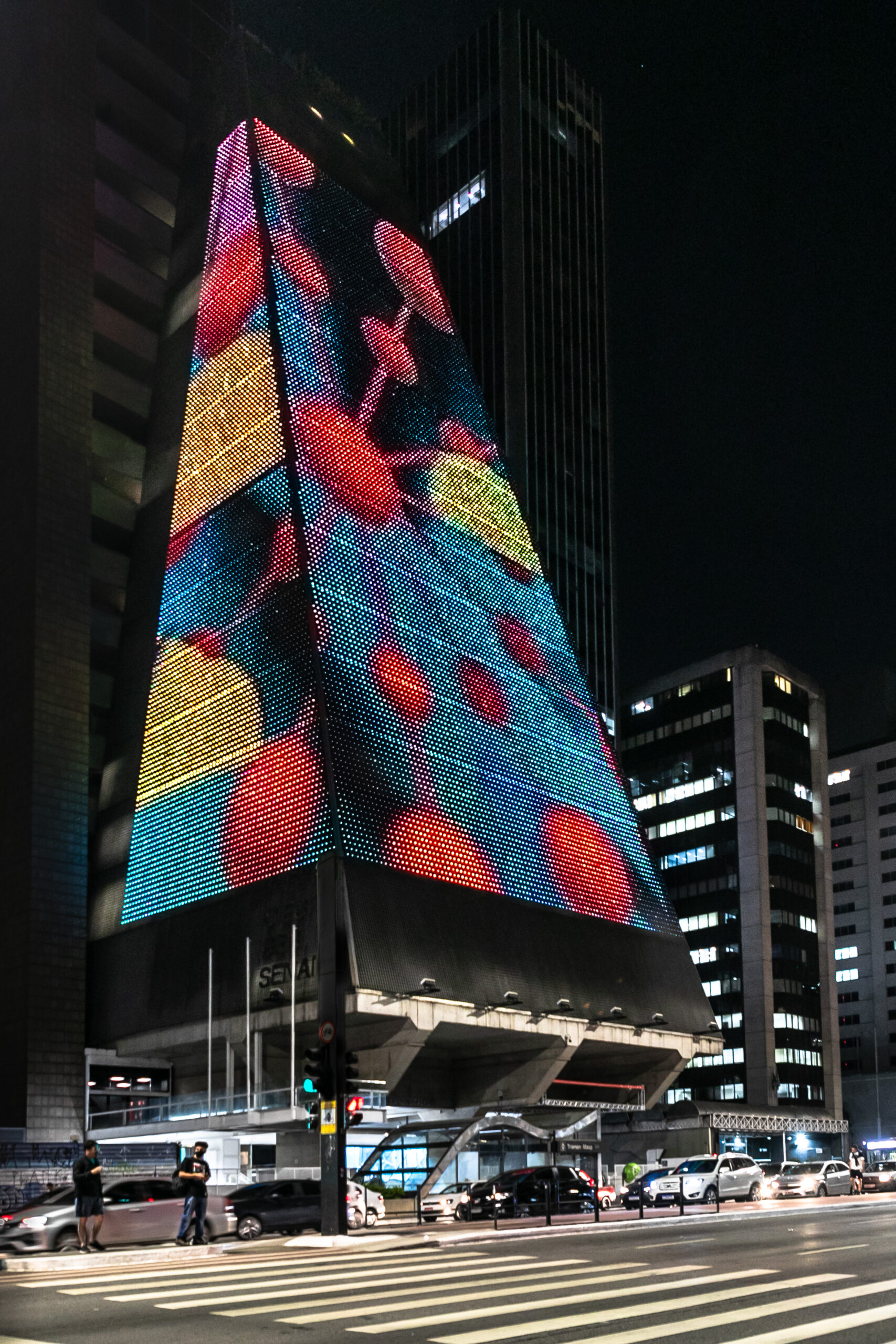 Esta animação é inspirada em kimonos sobrepostos e padronizados, com frequência encontrados em gravuras no estilo ukiyo-e. A animação cria uma série de padrões em movimento ao longo do tempo. Para conectar a animação às dinâmicas do mundo real, imaginei um mundo digital intocado sendo destruído por garrafas plásticas e copos de café jogados fora.