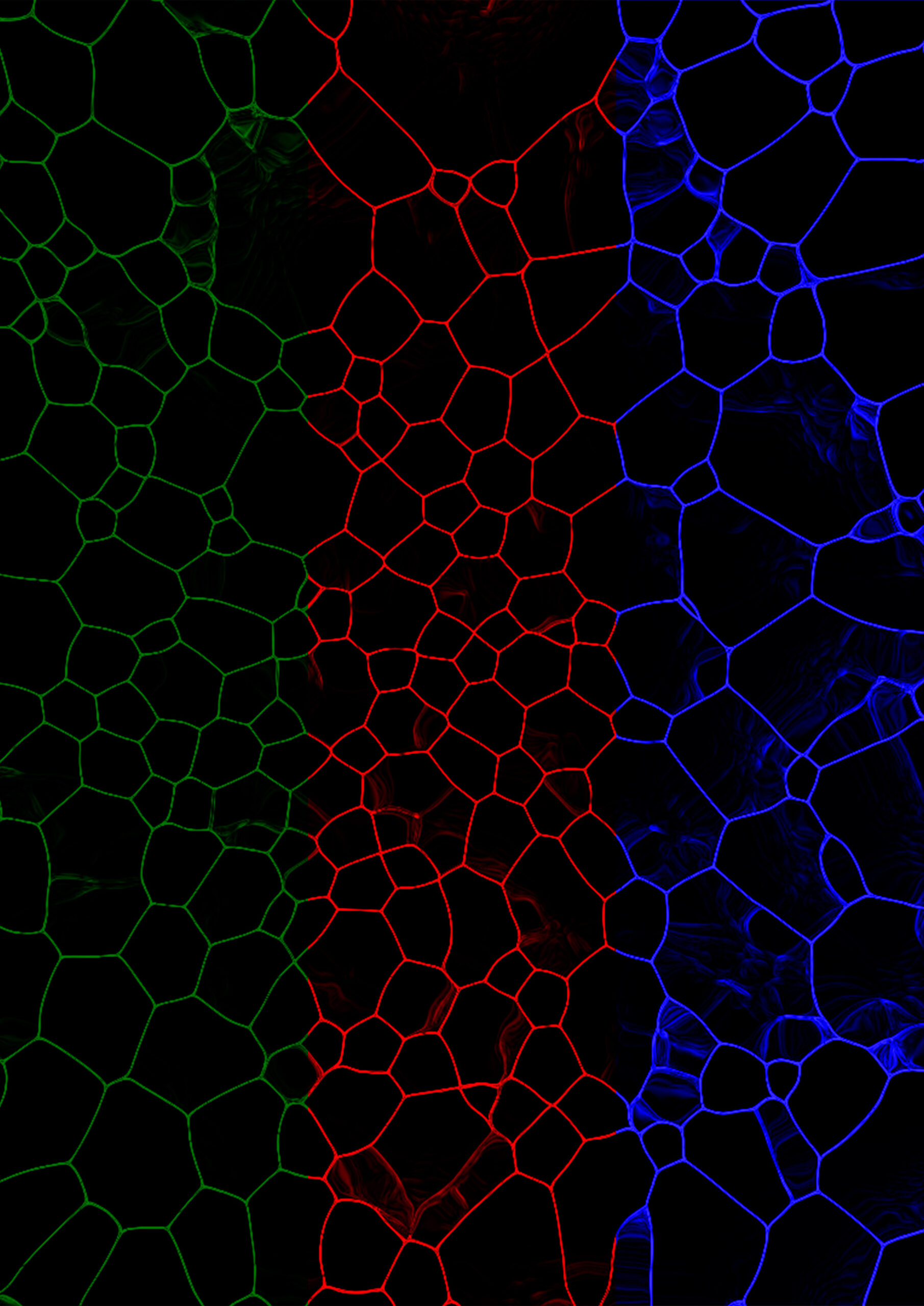 A obra mostra a entrada para uma teia formada por uma estrutura Voronoi. A teia sofre mutações com o tempo, transformando-se em áreas densas e brilhantes até buracos vastos e escuros.