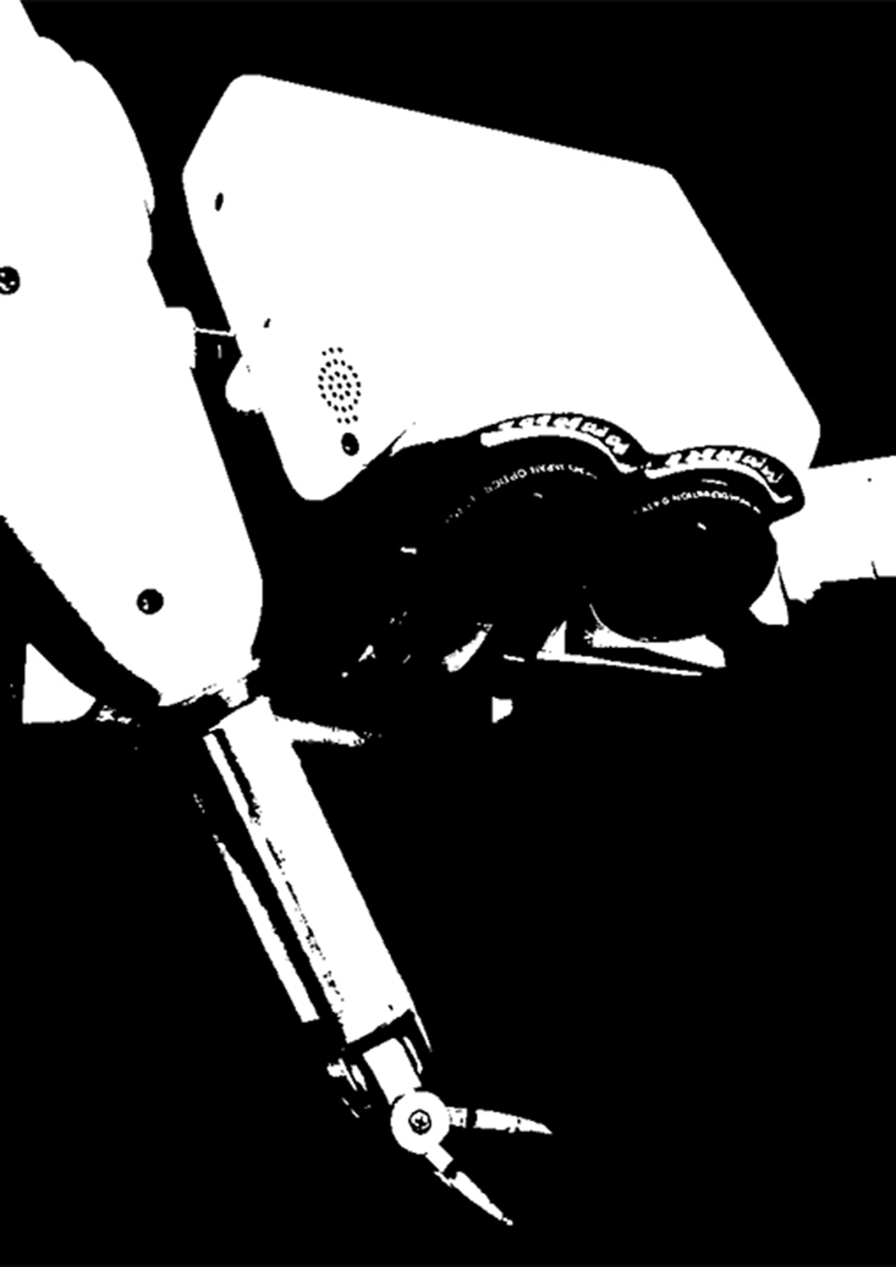 Um robô de dois braços pega uma planta e a examina antes de cuidadosamente colocá-la de volta. Exagerada em proporções extravagantes e representada em fortes contrastes em preto e branco, essa tarefa aparentemente simples convida os espectadores a imaginarem novas e surpreendentes narrativas sobre a natureza e a tecnologia em um ambiente urbano.