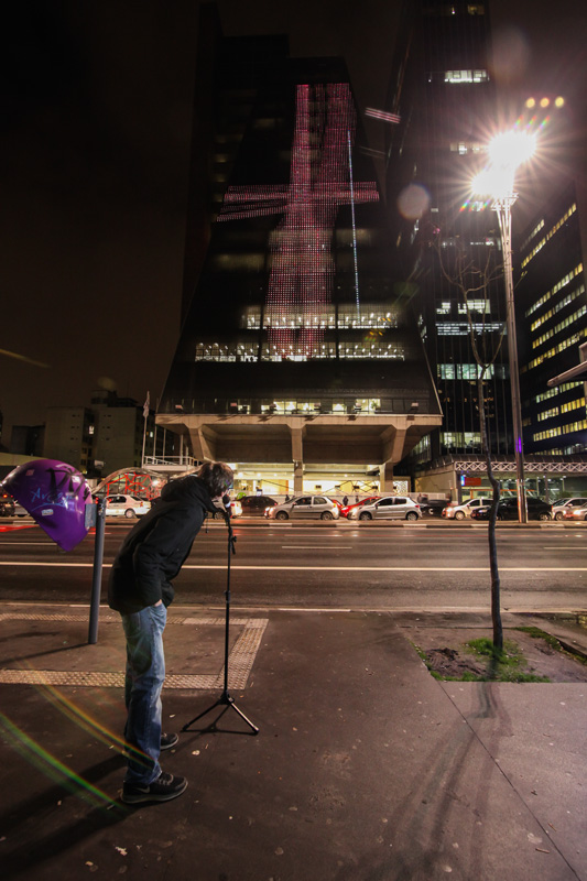 A exposição de arte-tecnologia do FILE São Paulo 2013 traz o trabalho inédito e interativo do famoso grupo 1024 architecture para ser apresentado no gigantesco painel de LED da avenida Paulista, no prédio da FIESP. As pessoas poderão modificar as imagens do painel através da sua voz ou do cantarolar de uma música.