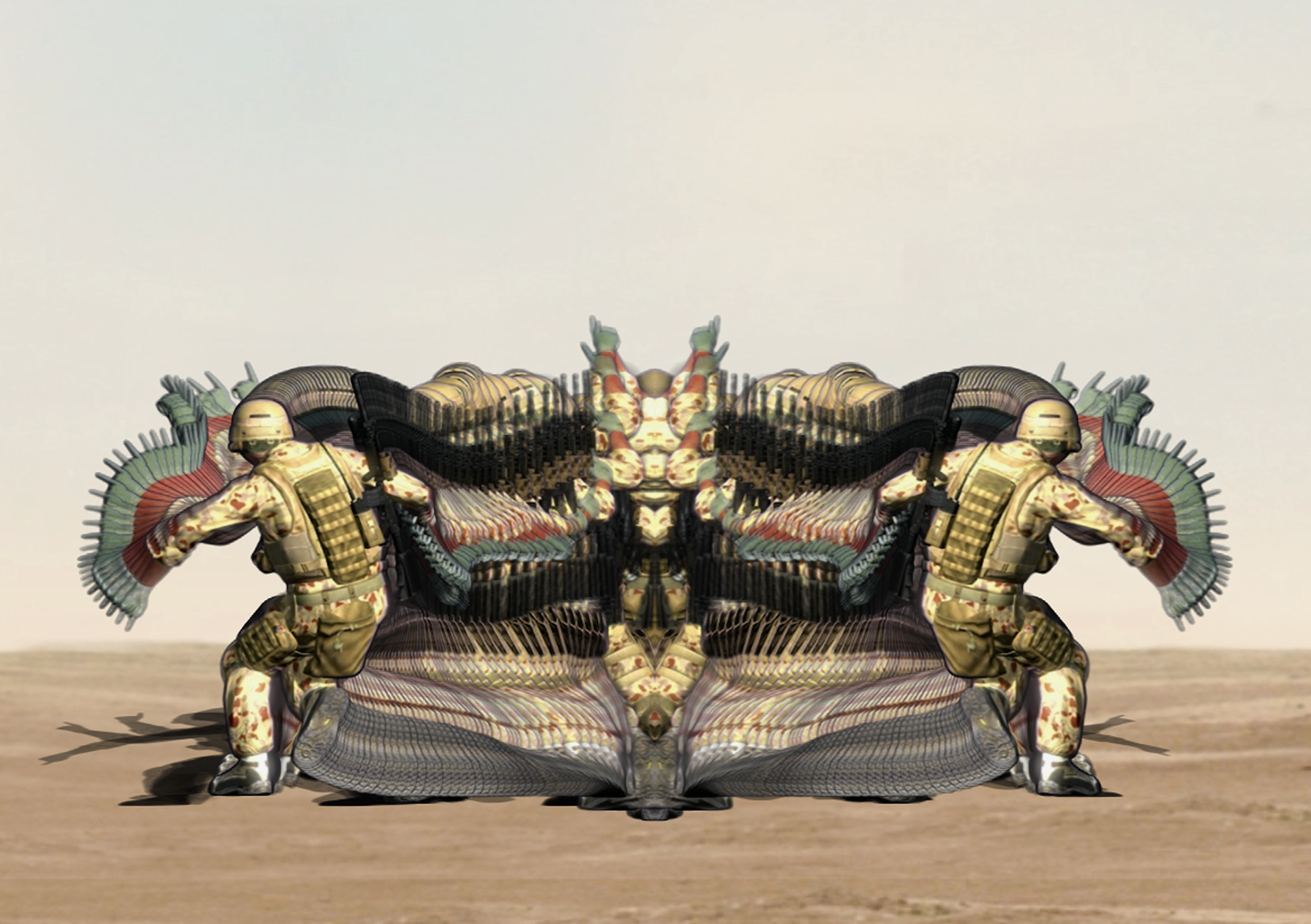 “Cadence” é uma série de quatro obras de novas mídias na qual a figura do soldado australiano, americano e do Taliban é colocada em paisagens apropriadas do cinema pró-militar e de simuladores de treinamento militar. Em vez de encenar gestos ou posturas militares padrão, o soldado simulado realiza uma dança lenta e poética. As políticas comuns do movimento, disciplina e postura do corpo militar são subvertidas e tornadas suaves e expressivas.