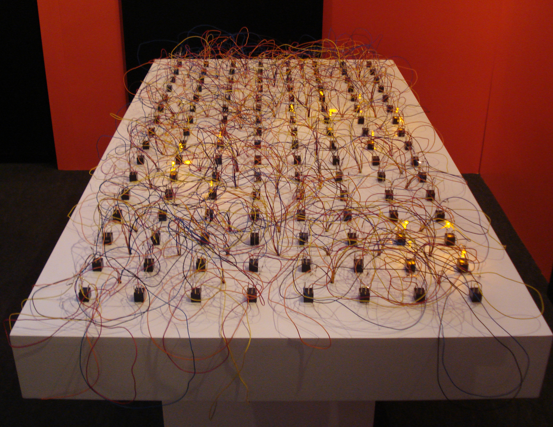 Esta obra faz parte de uma série de projetos que se pautam na possibilidade de intervir em sistemas complexos a partir da integração do espectador como elemento perturbador do comportamento desses sistemas. “Game of life: Sistema intervenido” incorpora o espectador, que pode intervir nesse algoritmo de vida artificial, modificando o estado da obra e o comportamento do sistema. Durante muito tempo as ciências se preocuparam com a explicação e a reprodução da vida. Exemplo disso é a vida artificial. Na atualidade a ciência deixou de apenas buscar atingir esses objetivos e passou a propor a intervenção da natureza. Este trabalho se pauta nessas questões, não se restringindo à criação de padrões de vida artificial e sim propondo a intervenção do próprio sistema, atingindo, assim, estados emergentes dentro do sistema por meio da intervenção de agentes externos a ele.