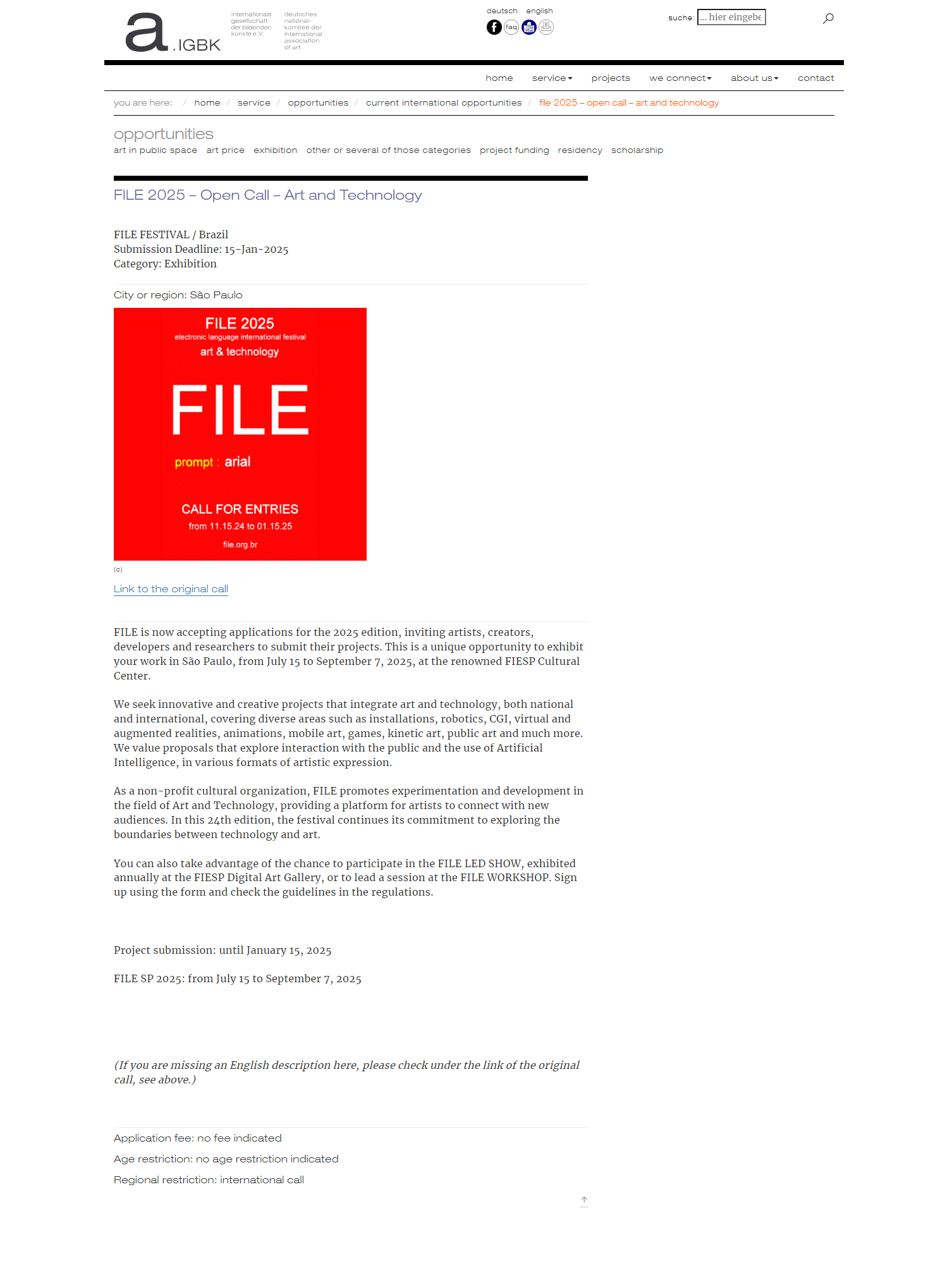 FILE 2025 – Open Call – Internationale Gesellschaft der Bildenden Künste (IGBK)