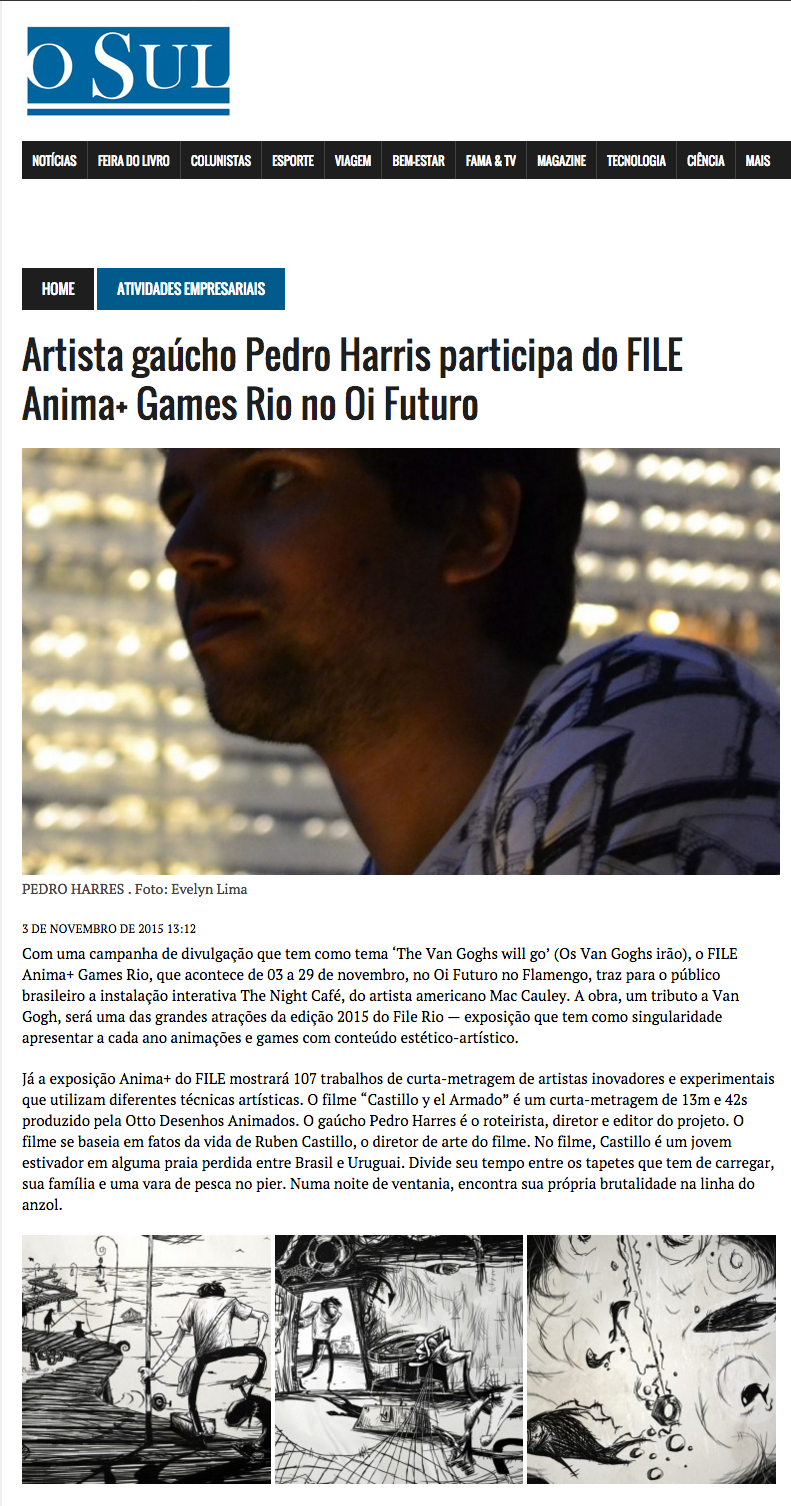 Já a exposição Anima+ do FILE mostrará 107 trabalhos de curta-metragem de artistas inovadores e experimentais que utilizam diferentes técnicas artísticas. O filme “Castillo y el Armado” é um curta-metragem de 13m e 42s produzido pela Otto Desenhos Animados. O gaúcho Pedro Harres é o roteirista, diretor e editor do projeto. O filme se baseia em fatos da vida de Ruben Castillo, o diretor de arte do filme. No filme, Castillo é um jovem estivador em alguma praia perdida entre Brasil e Uruguai. Divide seu tempo entre os tapetes que tem de carregar, sua família e uma vara de pesca no pier. Numa noite de ventania, encontra sua própria brutalidade na linha do anzol.
