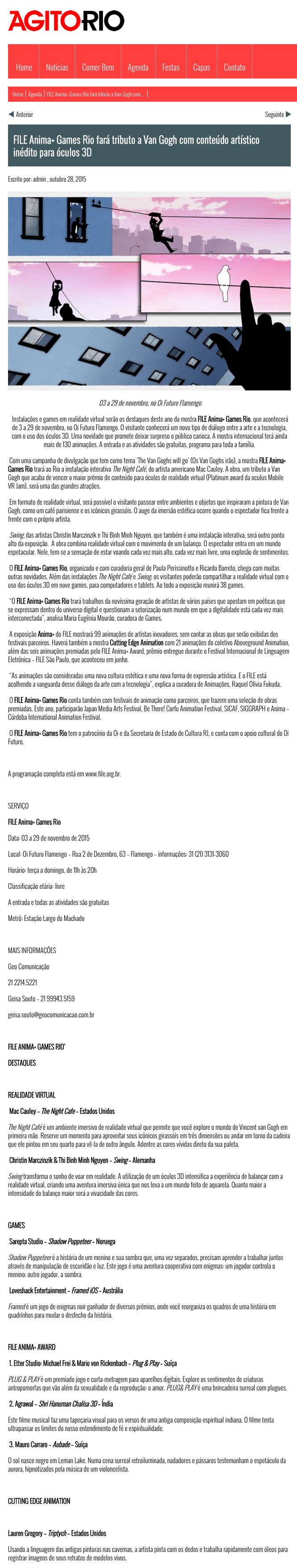 FILE Anima+ Games Rio fará tributo a Van Gogh com conteúdo artístico inédito para óculos 3D