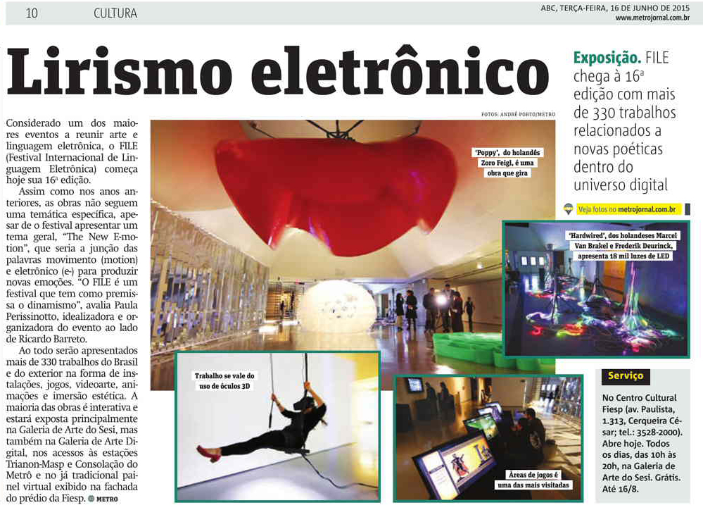 Considerado um dos maiores eventos a reunir arte e linguagem eletrônica, o FILE (Festival Internacional de linguagem Eletrônica) começa hoje sua 164 edição. Assim como nos anos anteriores, as obras não seguem uma temática específica, apesar de o festival apresentar um tema geral, “The New E-mo-tion”, que seria a junção das palavras movimento (motion) e eletrônico (e-) para produzir novas emoções .