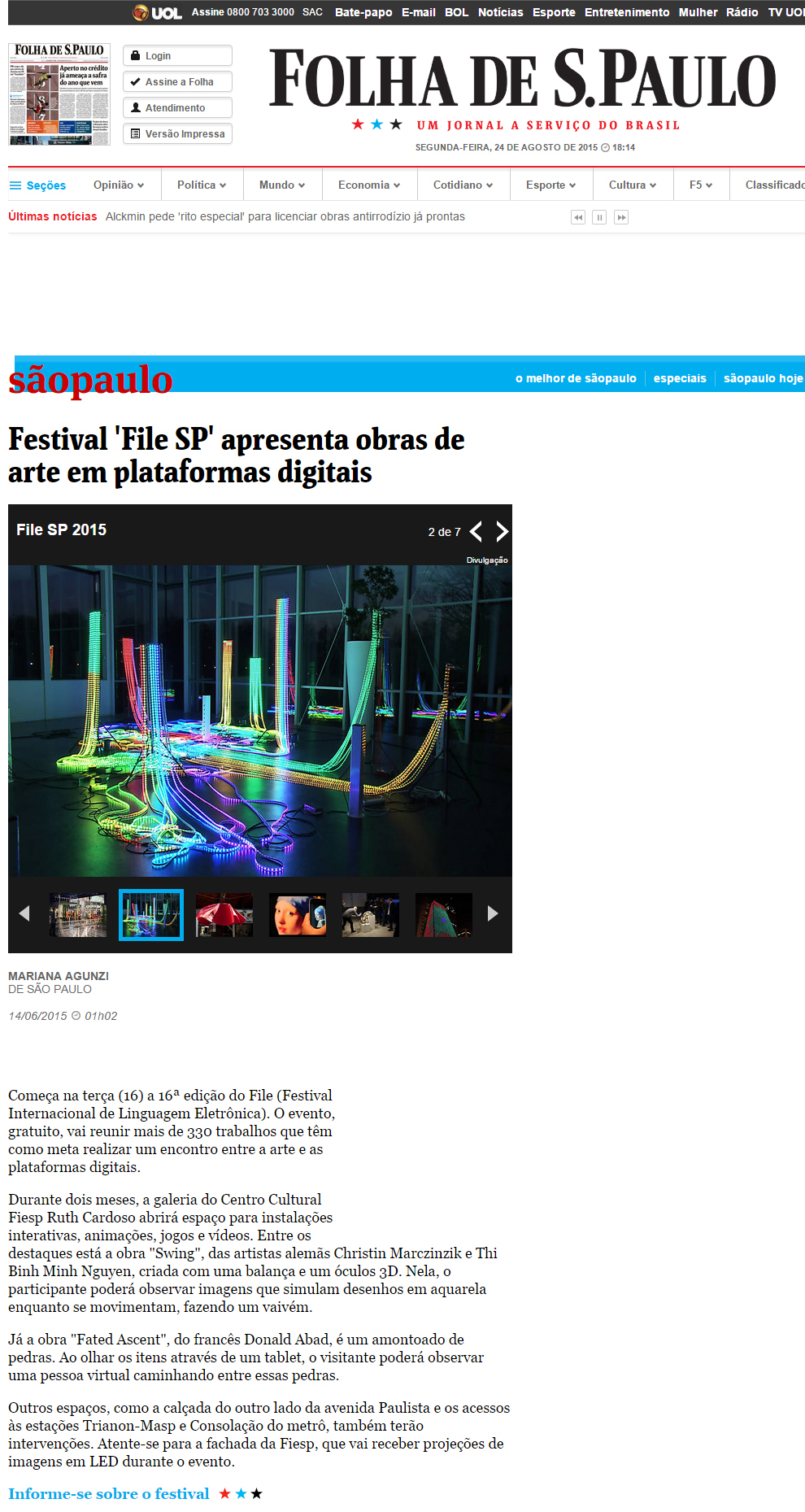 Começa na terça (16) a 16ª edição do File (Festival Internacional de Linguagem Eletrônica). O evento, gratuito, vai reunir mais de 330 trabalhos que têm como meta realizar um encontro entre a arte e as plataformas digitais.